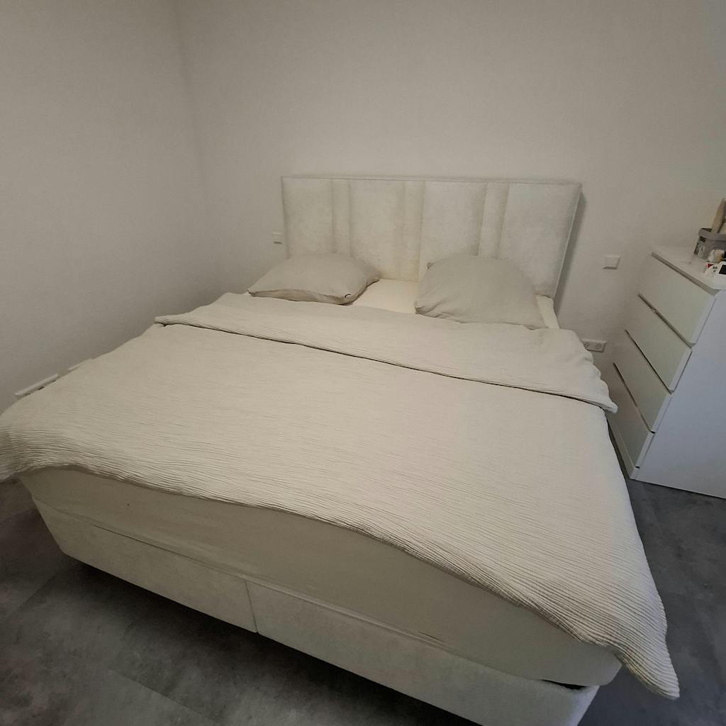 • Matratze (inkl. Topper): Höhe ca. 32 cm (vollorthopädisch, antibakteriell, atmungsaktiv)