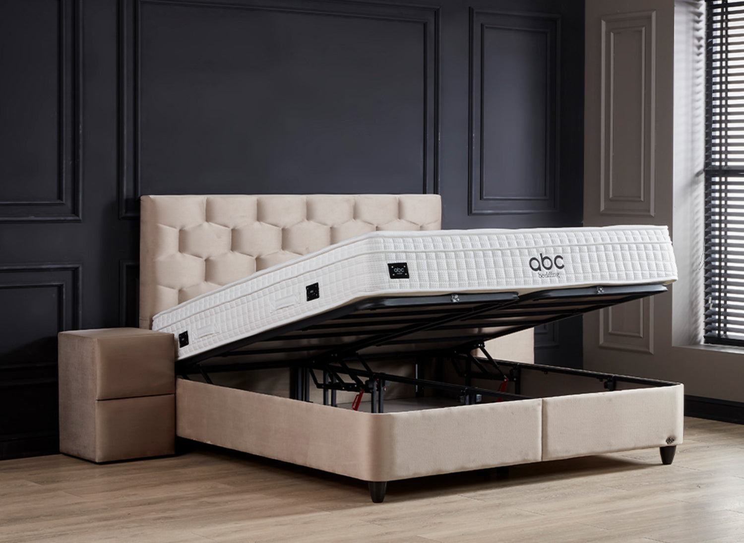 Ein herausragendes Merkmal des Palermo Boxspringbettes ist der integrierte Bettkasten, der großzügigen Stauraum für Bettwäsche, Decken oder andere Utensilien bietet. Der Zugang zum Bettkasten erfolgt über ein innovatives Gasfedersystem, das ein leichtes Anheben der Matratze ermöglicht und somit den Stauraum mühelos zugänglich macht. Diese Funktion ist besonders in kleineren Schlafzimmern von Vorteil, da sie hilft, den vorhandenen Platz effizient zu nutzen und für Ordnung zu sorgen.