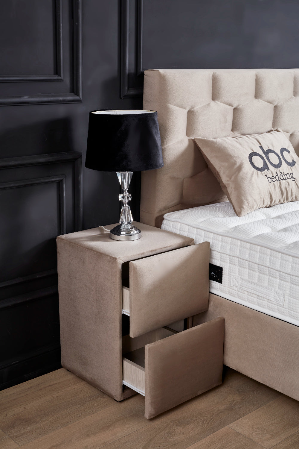 Für ein harmonisches Gesamtbild und zusätzlichen Komfort kann das Palermo Boxspringbett mit passenden Nachttischen (B/H/T ca. 40 x 63 x 43 cm) und einer Bettbank (B/H/T ca. 140 x 50 x 43 cm) ergänzt werden. Die Nachttische verfügen über zwei Schubladen, die weiteren Stauraum für persönliche Gegenstände bieten. Die Bettbank verfügt ebenfalls über einen praktischen Stauraum, ist erhältlich in den Breiten 140 cm, dient als praktische Sitzgelegenheit oder Ablagefläche und rundet das Schlafzimmerensemble stilvoll ab.