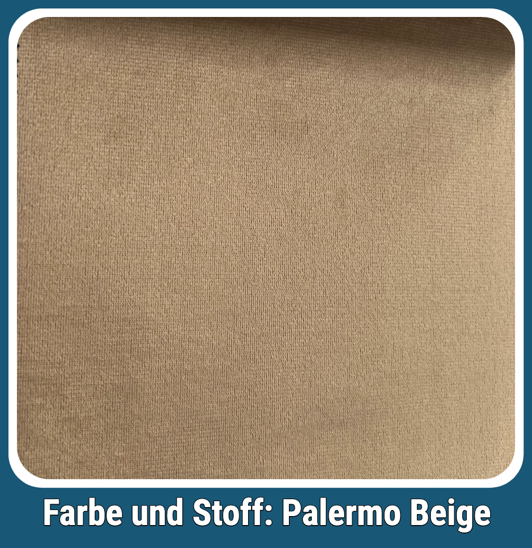 Das Palermo Boxspringbett besticht durch seine elegante Gestaltung in der Farbe Beige. Der luxuriöse Samtbezug (Farbcode 102TS) verleiht dem Bett eine zeitlose Ästhetik, die sich harmonisch in unterschiedliche Schlafzimmerdekore einfügt. Das hohe Block-Kopfteil mit einer Höhe von ca. 122 cm präsentiert sich in einem klassischen und luxuriöses Design aus. Die geometrische, wagenartige Polsterung sorgt für eine einzigartige Optik, die Tiefer und Struktur schafft. Diese aufwendige Gestaltung macht das Kopfteil zu einem stillvollen Hingucker und fügt sich harmonisch in verschiedene Einrichtungsstille ein. Der hochwertige, samtige Bezug in einem Beige verleiht dem Kopfteil eine weiche, einladende Haptik und gleichzeitig eine edle Optik. Der Großzügige Höhe und die Seitenteile des Kopfteils bieten nicht nur optisch beeindruckende Präsenz, sondern auch praktische Nutzen als bequeme Rückenlehne. Diese Gestaltung sorgt für ein angenehmes Anlehnen beim Lesen oder Fernsehen im Bett. Das harmonische Zusammenspiel aus Material, Farbe und Design macht dieses Kopfteil zu einem zentralen Element des Bettes und setzt in jedem Schlafzimmer stilvolle Akzente.