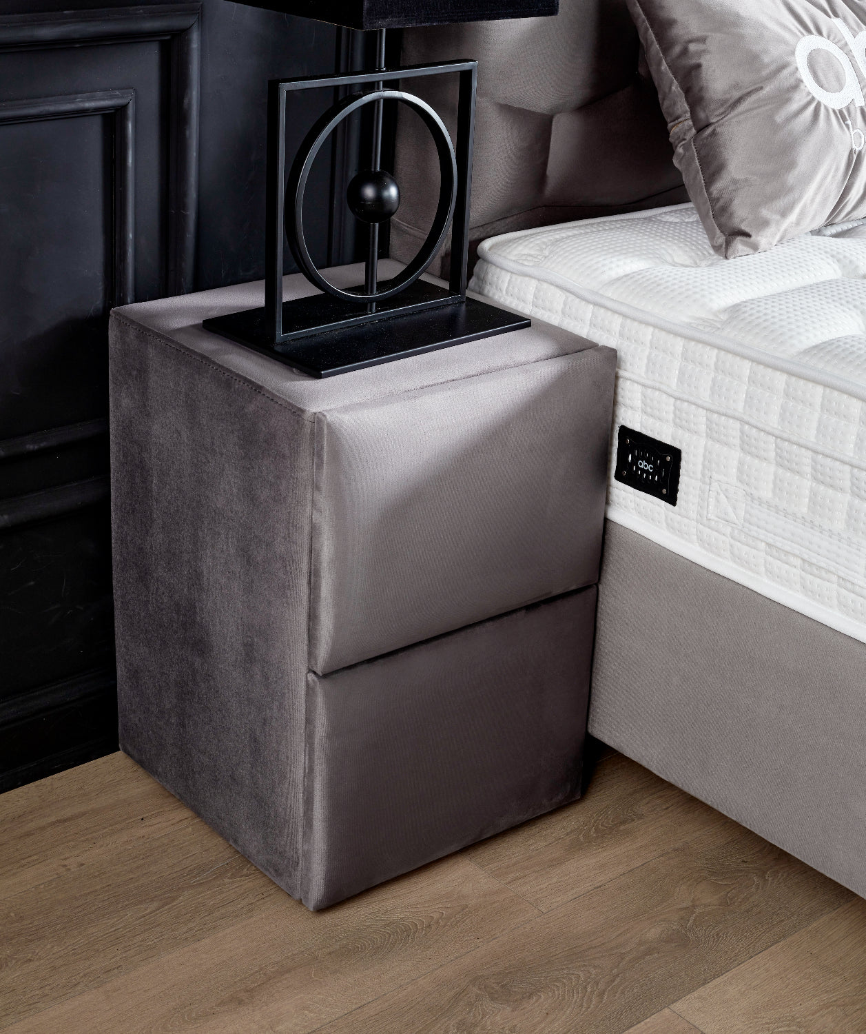 Für ein harmonisches Gesamtbild und zusätzlichen Komfort kann das Palermo Boxspringbett mit passenden Nachttischen (B/H/T ca. 40 x 63 x 43 cm) und einer Bettbank (B/H/T ca. 140 x 50 x 43 cm) ergänzt werden. Die Nachttische verfügen über zwei Schubladen, die weiteren Stauraum für persönliche Gegenstände bieten. Die Bettbank verfügt ebenfalls über einen praktischen Stauraum, ist erhältlich in den Breiten 140 cm, dient als praktische Sitzgelegenheit oder Ablagefläche und rundet das Schlafzimmerensemble stilvoll ab.