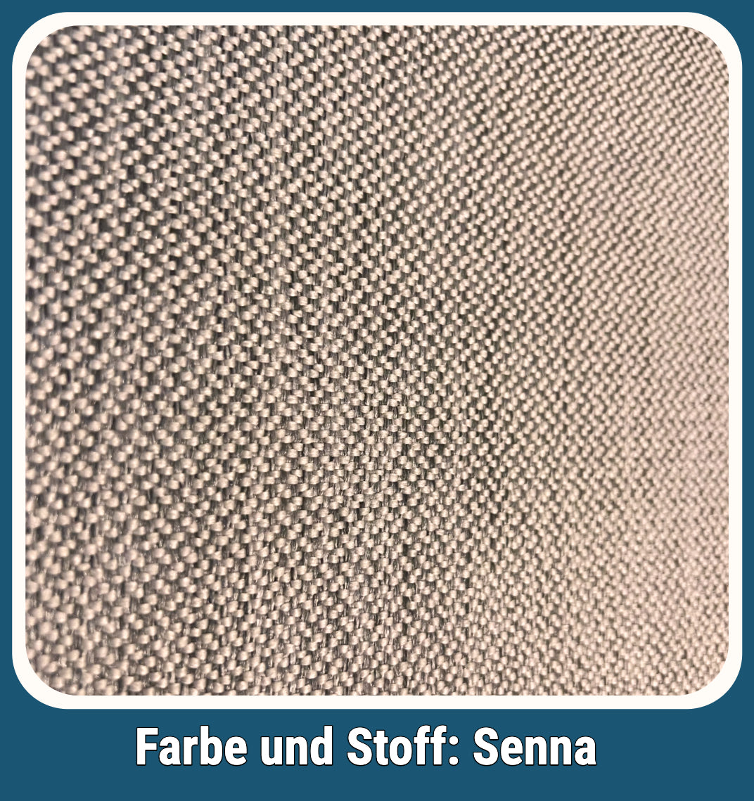 Das Boxspringbett Senna präsentiert sich in einem edlen, warmen Beige/Braun-Ton, der zeitlose Eleganz mit moderner Funktionalität vereint. Der luxuriöse Stoffbezug (ABC Farbbezeichnung 6232) verleiht dem Bett eine zeitlose Ästhetik, die sich harmonisch in unterschiedliche Schlafzimmerdekore einfügt. Das elegante Kopfteil mit einer Höhe von ca. 128 cm unterstreicht den modernen Charakter des Bettes und bietet gleichzeitig eine bequeme Rückenlehne für entspannte Stunden beim Lesen oder Fernsehen. Das Kopfteil des Bettes Senna hat ein modernes, elegantes Design mit einer klaren, geometrischen Struktur. Es ist in vier große, rechteckige Polsterelemente unterteilt, die horizontal ausgerichtet sind und dem Kopfteil eine weiche, gepolsterte Optik verleiht.