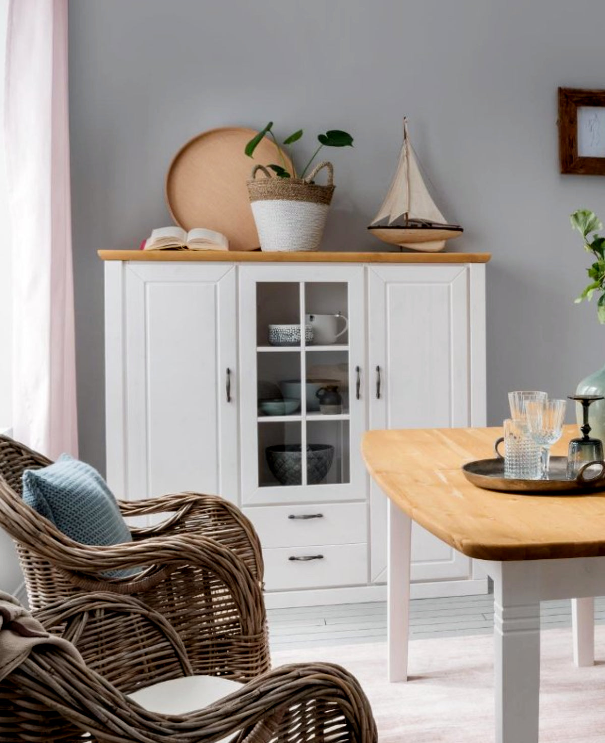 Esszimmer Highboard Adela 3-türig mit Schublade aus Kiefer massiv B/H/T 144 x 135 x 42 cm