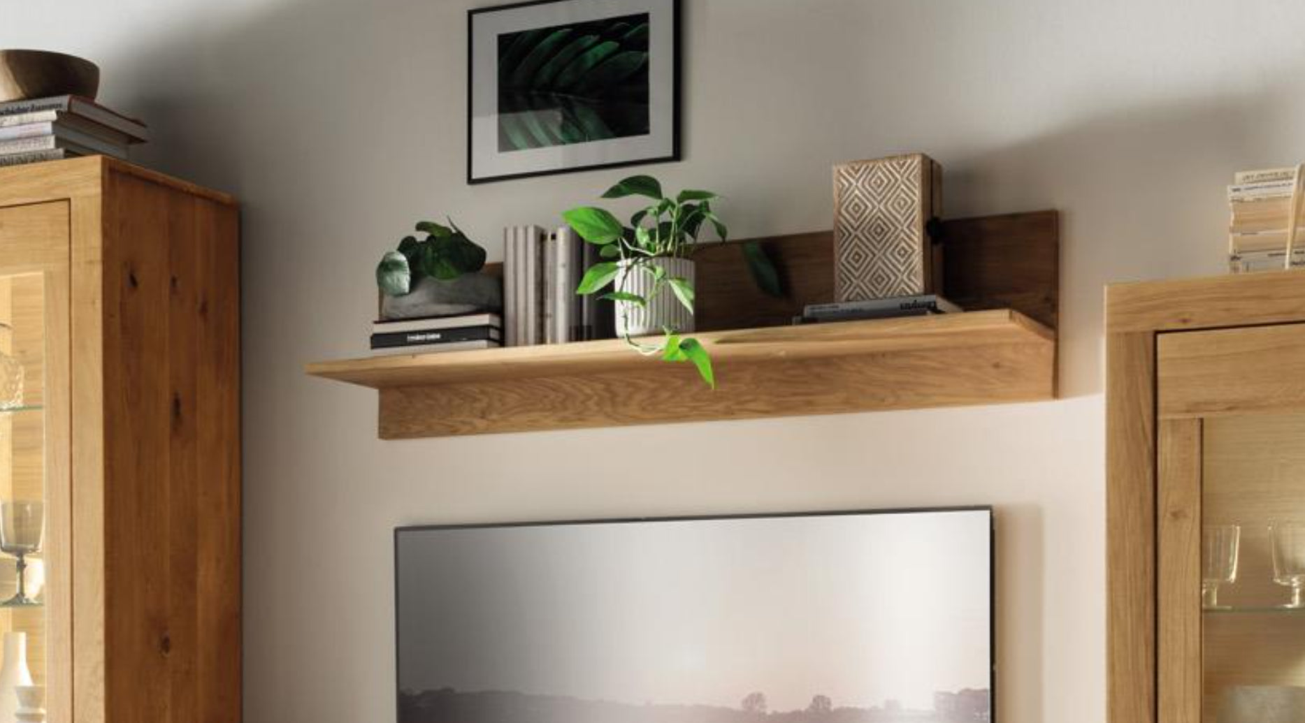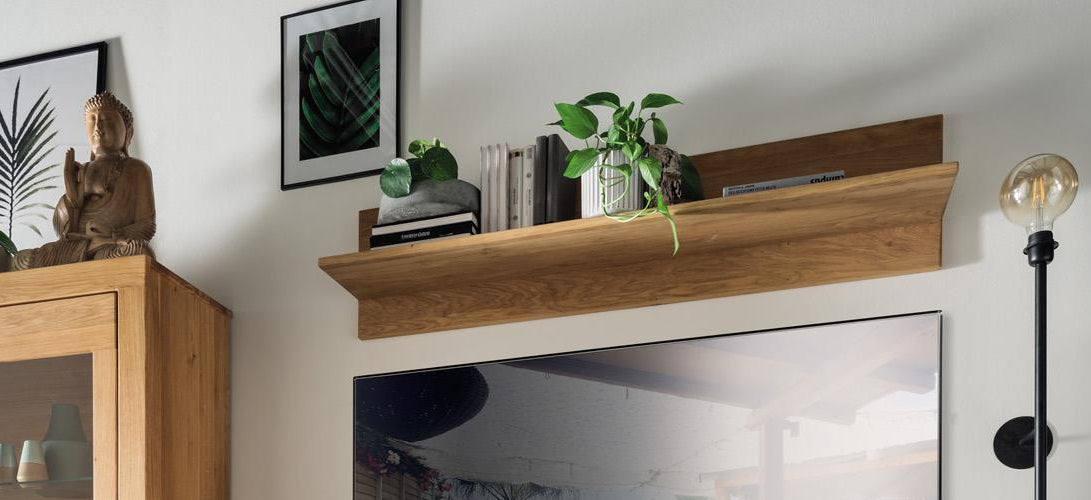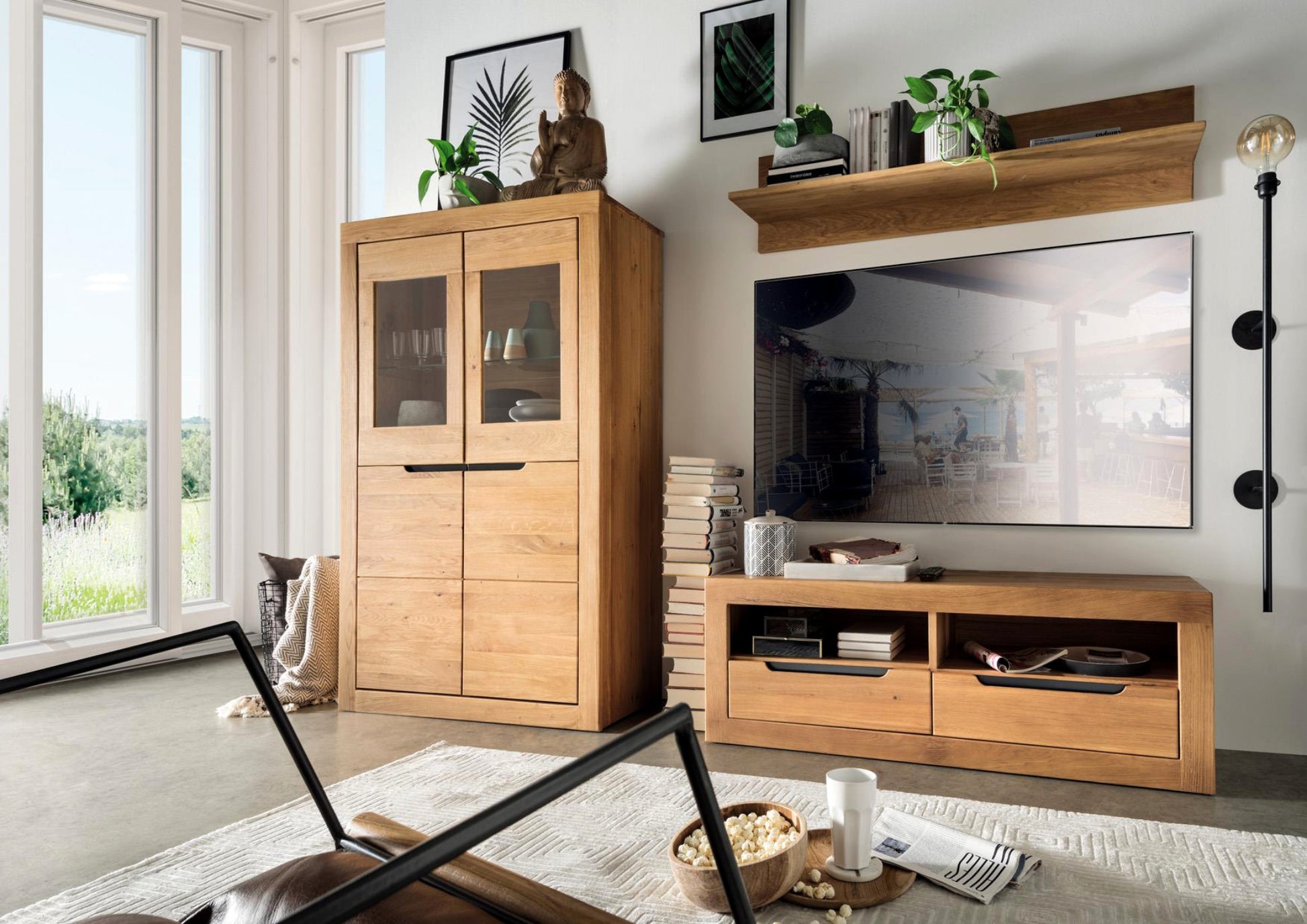 inkl. Softclose-Funktion, Wandregal 125x30cm, TV Lowaboard 125x45 cm, Vitrinenschrank 95x155 cm. Lieferzeit ca. 4-6 Wochen.