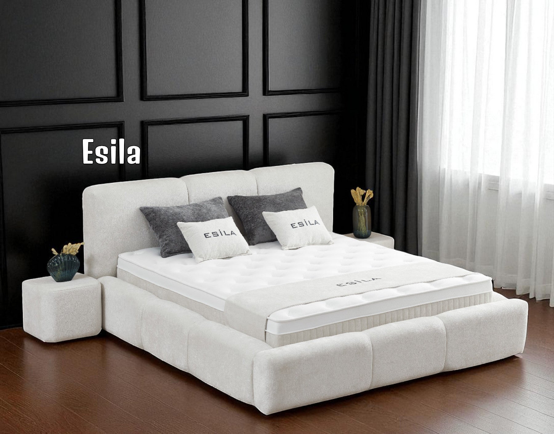 Ein herausragendes Merkmal des Esila Boxspringbettes ist der integrierte Bettkasten, der großzügigen Stauraum für Bettwäsche, Decken oder andere Utensilien bietet. Der Zugang zum Bettkasten erfolgt über ein innovatives Gasfedersystem, das ein leichtes Anheben der Matratze ermöglicht und somit den Stauraum mühelos zugänglich macht. Diese Funktion ist besonders in kleineren Schlafzimmern von Vorteil, da sie hilft, den vorhandenen Platz effizient zu nutzen und für Ordnung zu sorgen.