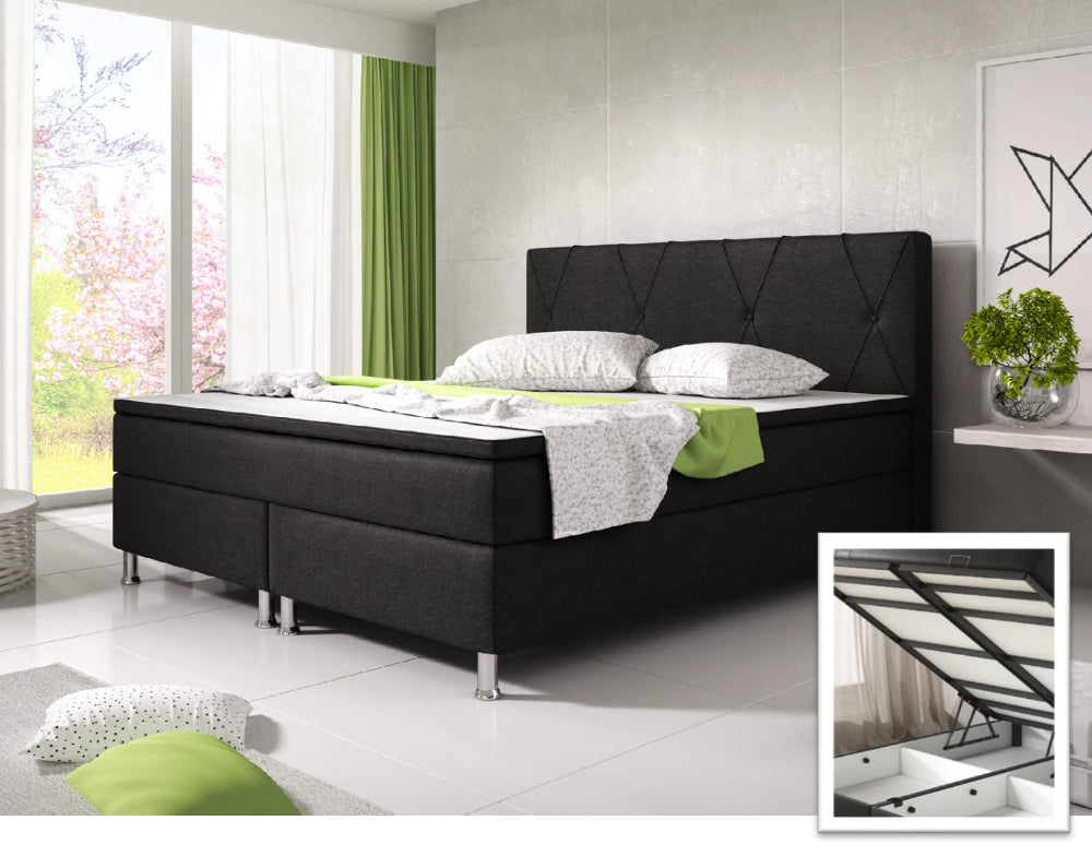 Boxspringbett M02-Bonn Anthrazit - Schwarz Breite 180 x 200 cm