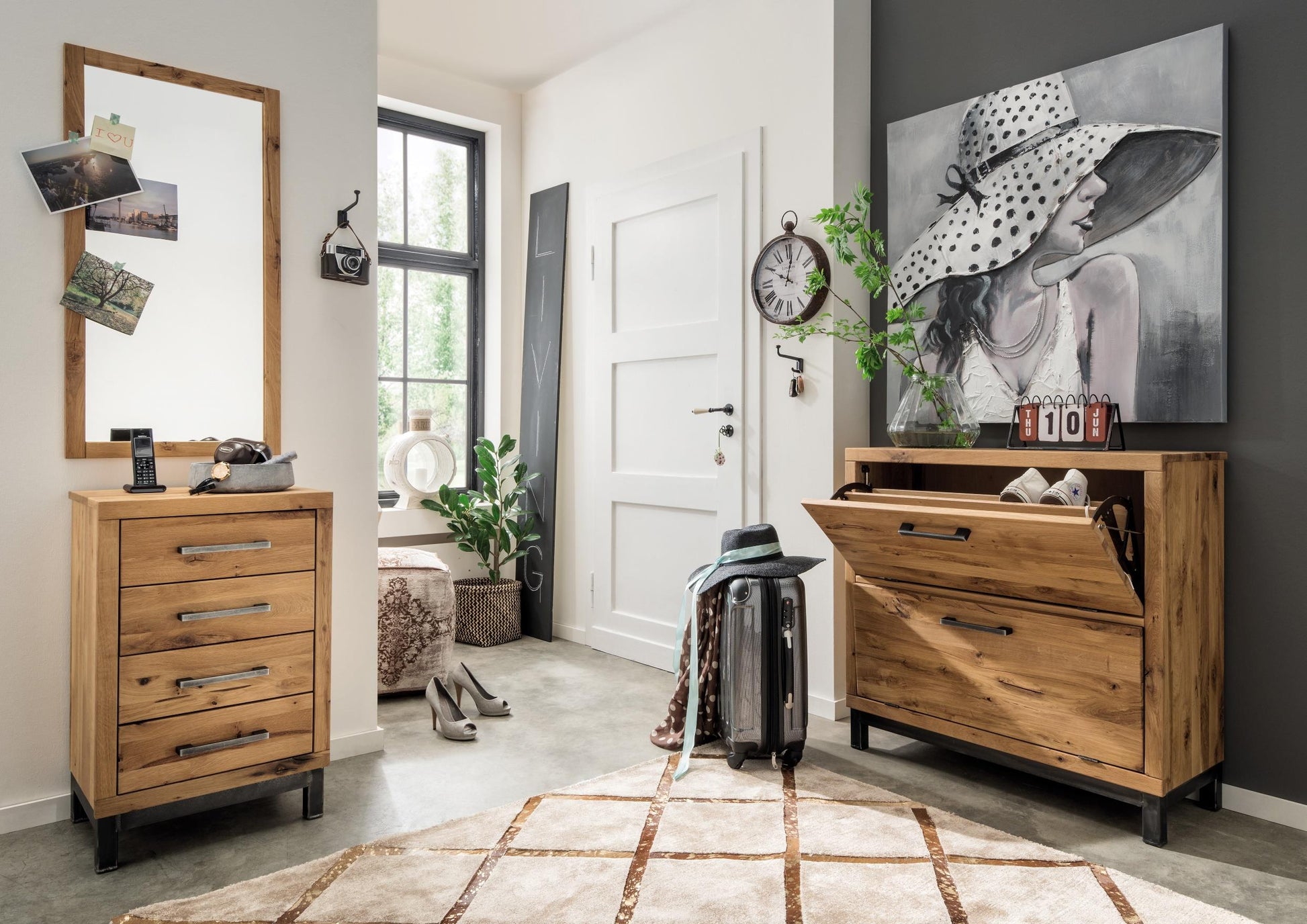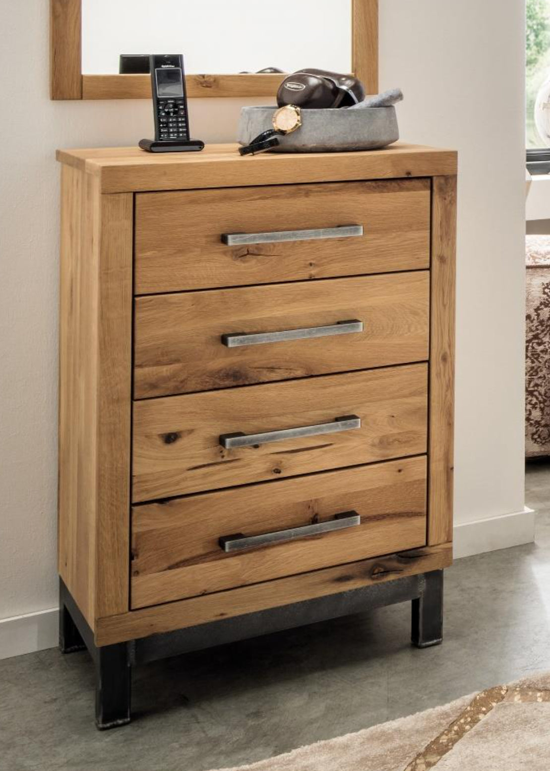 Dekor mit Wuchsrissen/Eisen vintage Schwarz, 4 Schubladen inkl. Softclose-Funktion. Lieferzeit ca. 5-8 Wochen.