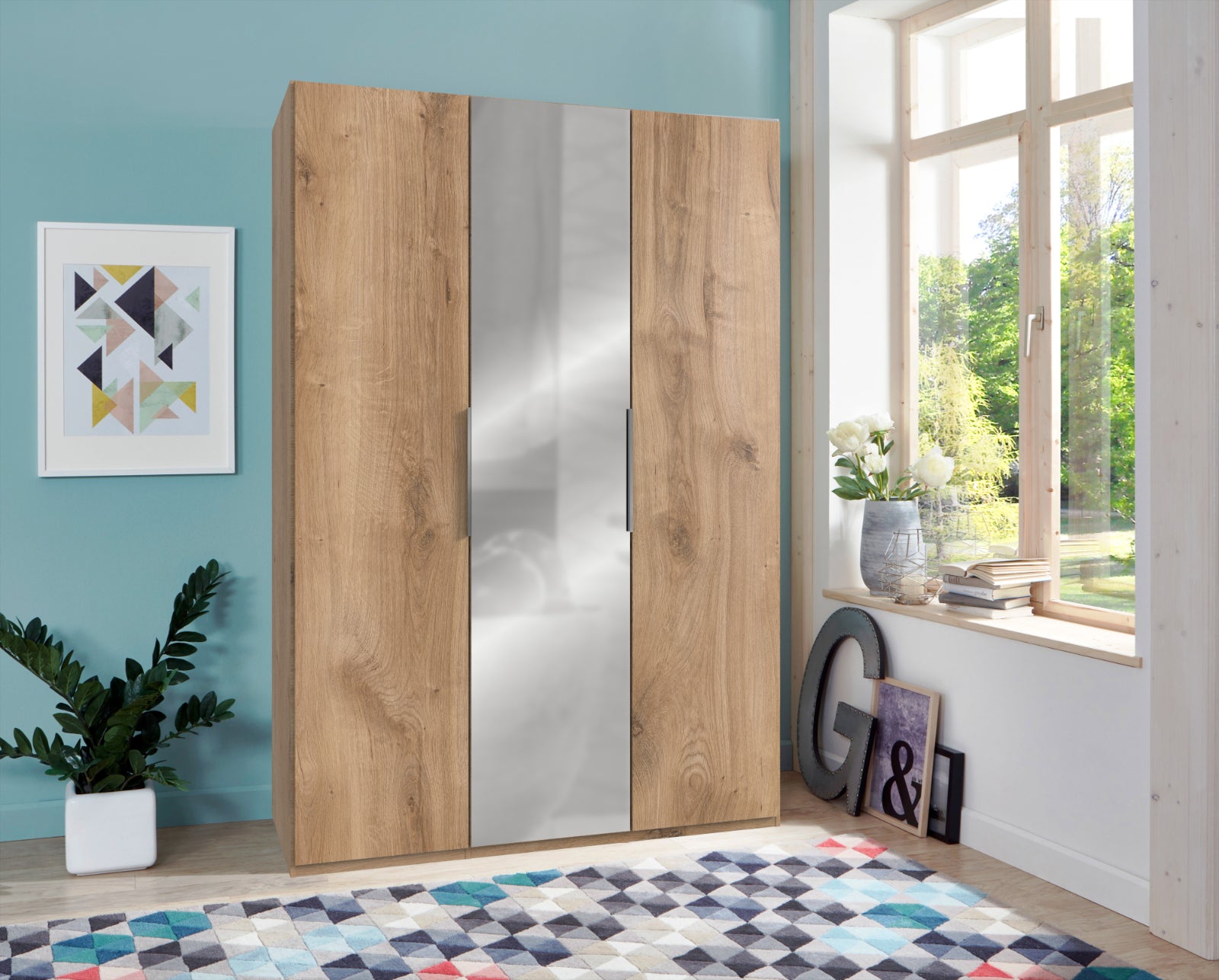In dem Drehtürenschrank Level 36A mit 3 Türen und einer mittleren Spiegeltür in 6 Farbvarianten können Sie Ihre Garderobe auf stilvolle und praktische Weise verstauen. Wählen Sie zwischen einer Höhe von 216 oder 236 cm und genießen Sie den zusätzlichen Nutzen des Spiegels. Maße: B/H/T 150 x 216 x 58 cm.