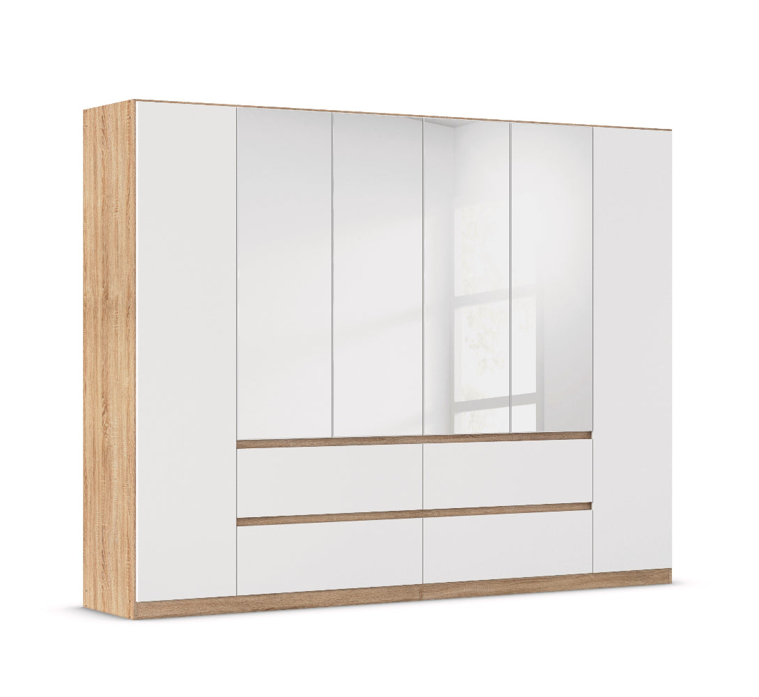 Drehtürenschrank Mainz 6-türig mit 4 Spiegeltüren und 4 Schubladen B/H/T ca. 270 x 210 x 54 cm