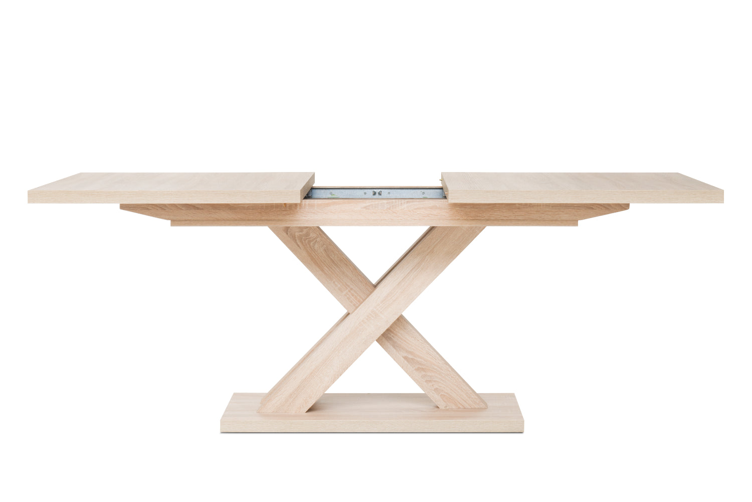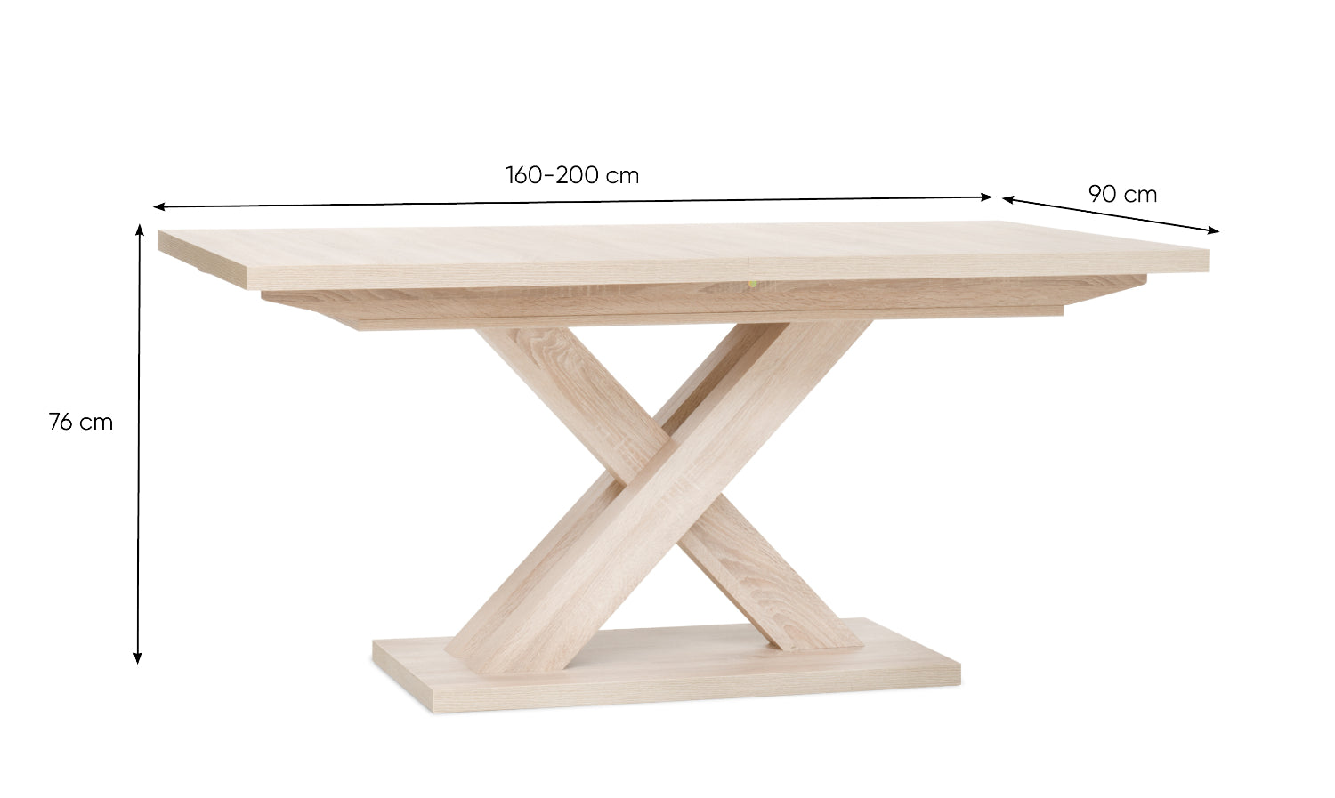 Auszugfunktion vom 160 bis 200 cm. Dekor: Holzwerkstoff Eiche-Sonoma-Nachbildung. Füße X-Förmig.