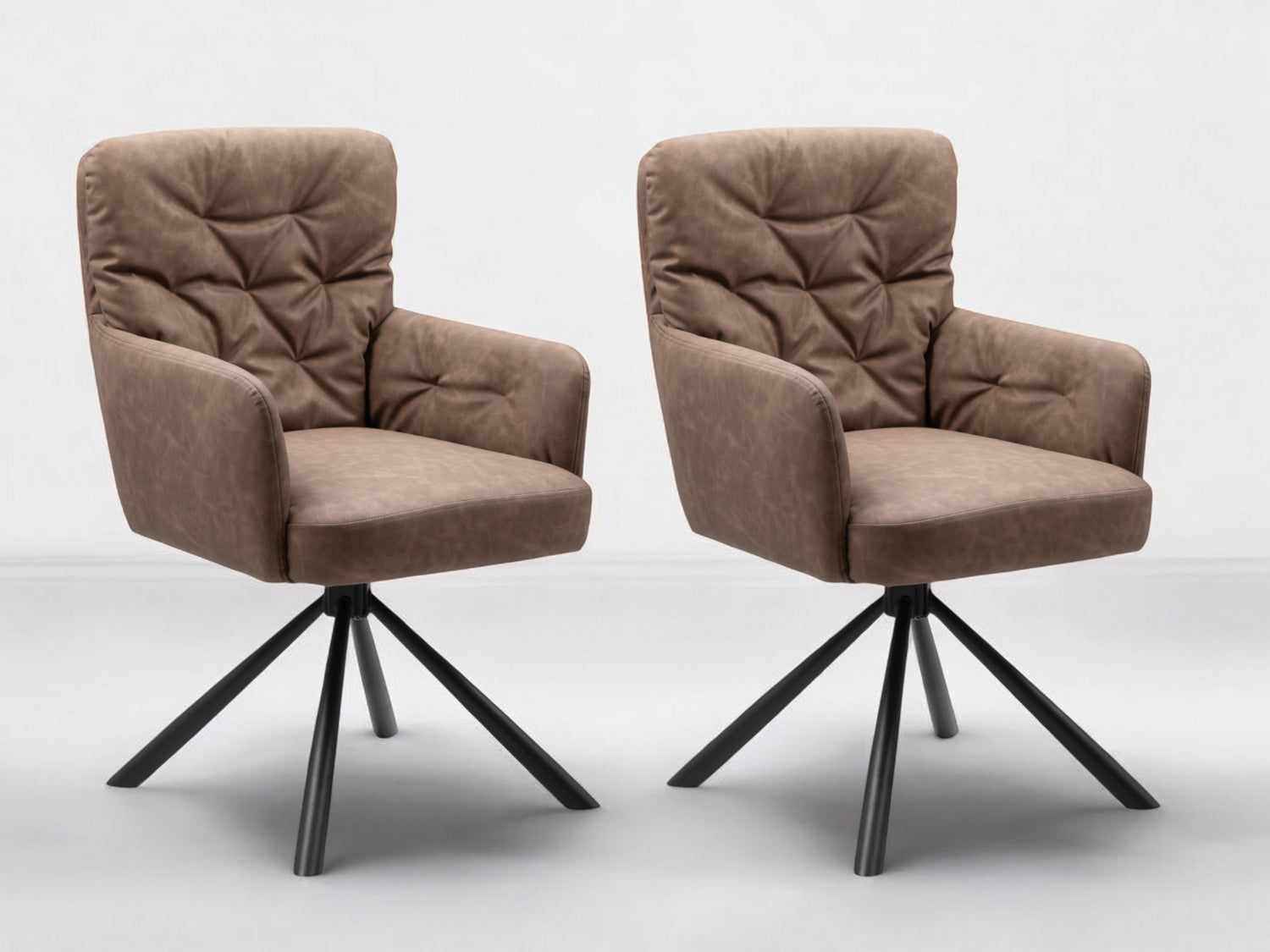 2er Set, Stoff Lederoptik Braun, Metallgestell Schwarz. Größe: B/H/T ca. 60 x 93 x 67 cm. Sitzhöhe ca. 51 cm, Sitztiefe ca. 48 cm, maximale Belastbarkeit: ca. 120 kg, 180 grad Drehbar.