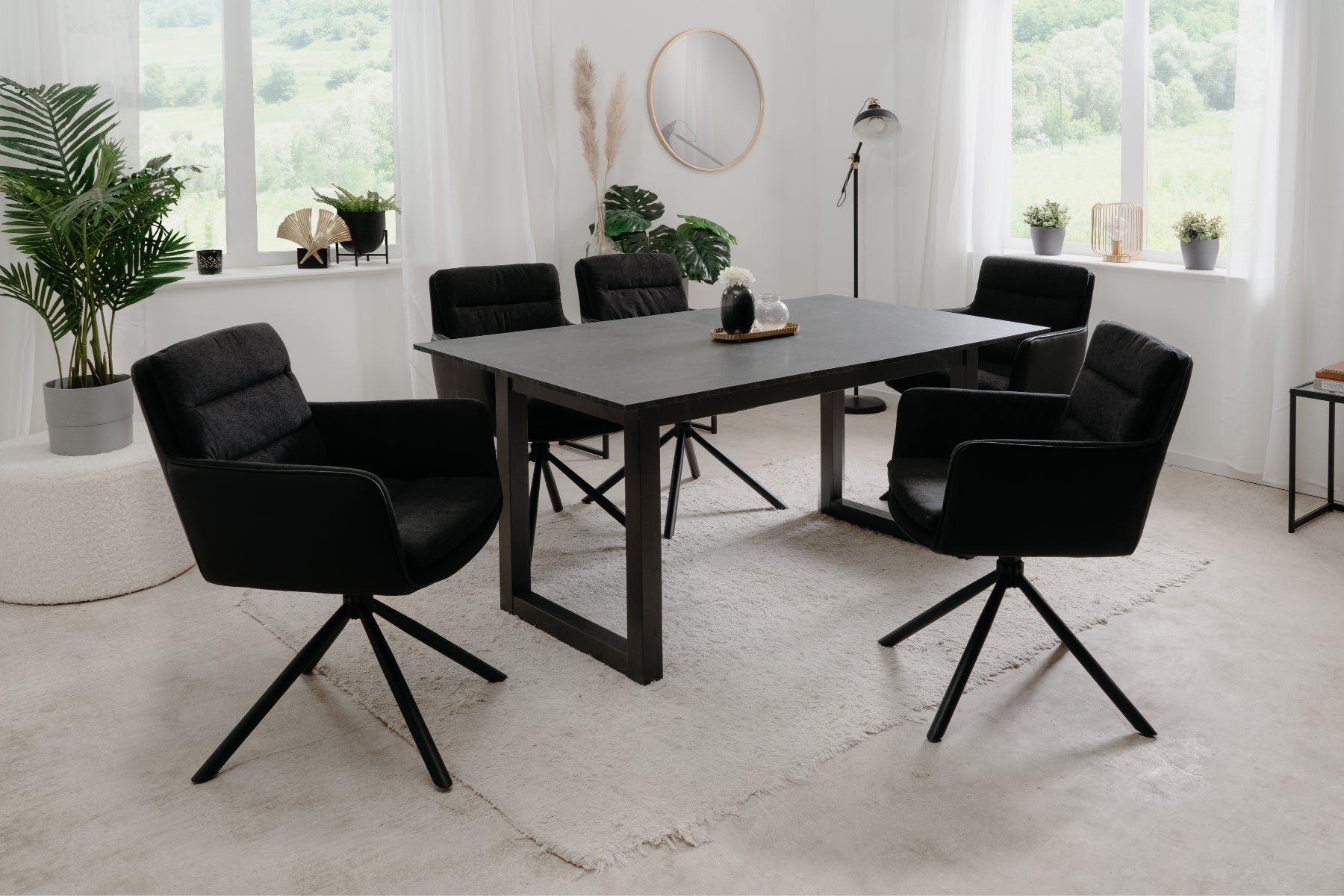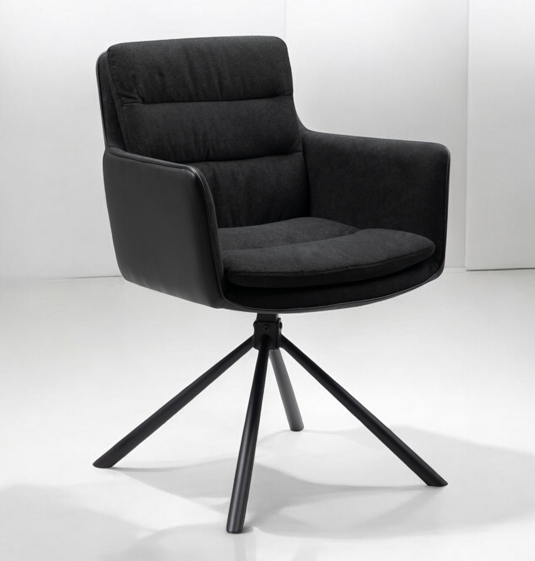 Genießen Sie den einzigartigen Komfort und die elegante Schönheit des gepolsterten Der Finori Polsterstuhl Logan 70A mit Armlehnen bietet Ihnen dank seiner robusten Metallbeine einen stabilen Sitz für verschiedene Gelegenheiten. Er ist mit schwarzem oder braunen Lederoptik und Biege oder anthrazitfarbenem Cordstoff bezogen und kann bis zu 120 kg tragen. Genießen Sie die 360-Grad-Drehfunktion und gönnen Sie sich stilvolle Mittagspausen und entspannte Abende auf diesem hochwertigen Stuhl. Sein modernes Design und die hochwertige Verarbeitung werden Sie begeistern und inspirieren.