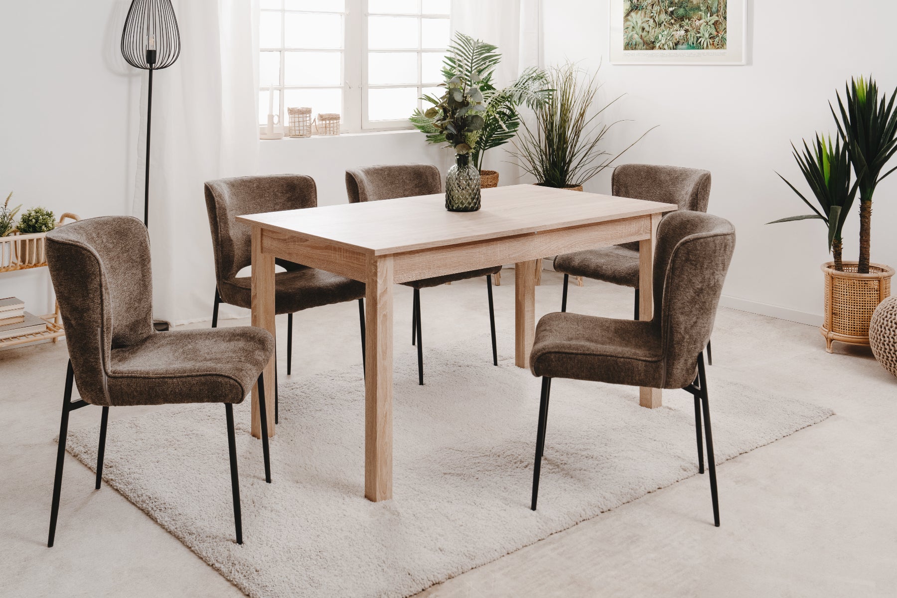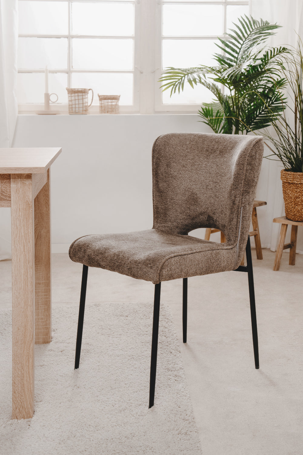 Erleben Sie den Komfort und die Eleganz des Finori Stuhls Tom! Der Polsterstuhl überzeugt mit seinem bequemen Stoffbezug in Grau-Braun und robusten Metallfüßen. Mit einer Belastbarkeit von bis zu 120 kg bietet er eine stabile Sitzgelegenheit für jeden Anlass. Genießen Sie stilvolle Mahlzeiten oder entspannte Abende auf diesem hochwertigen Stuhl. Perfekt für jeden Raum, um sich zu entspannen und das Wohlfühlen zu genießen.