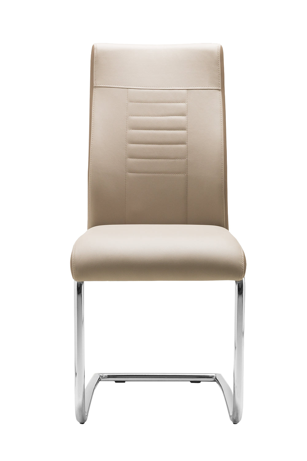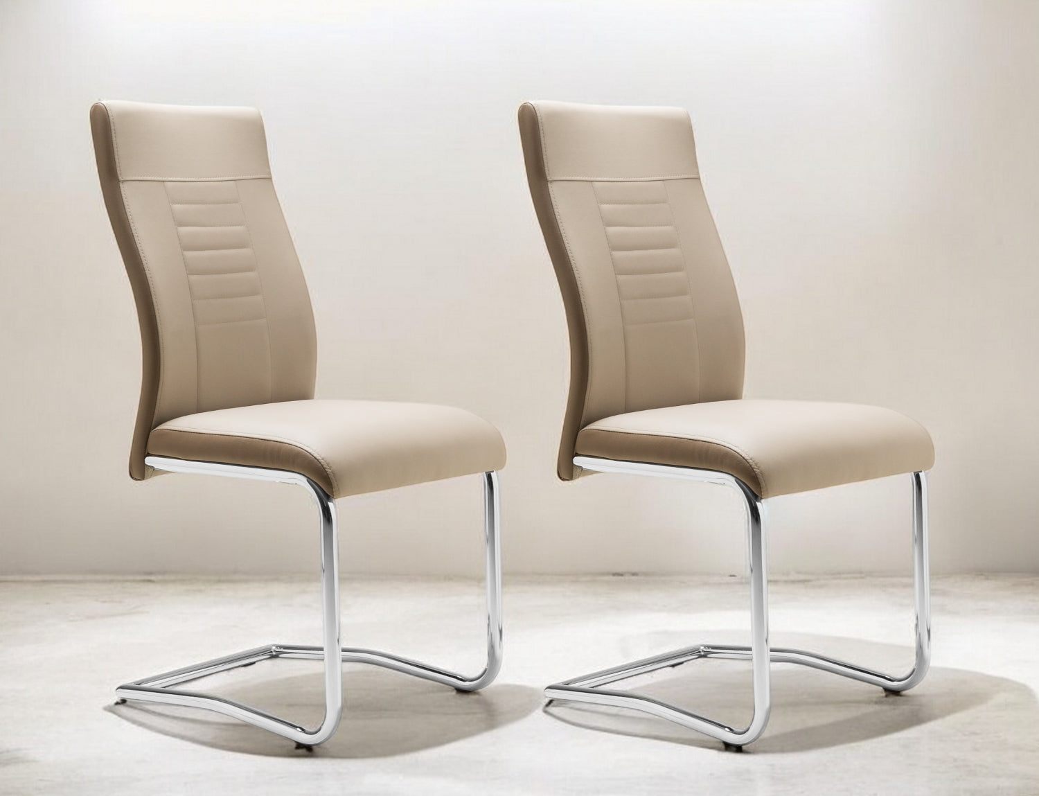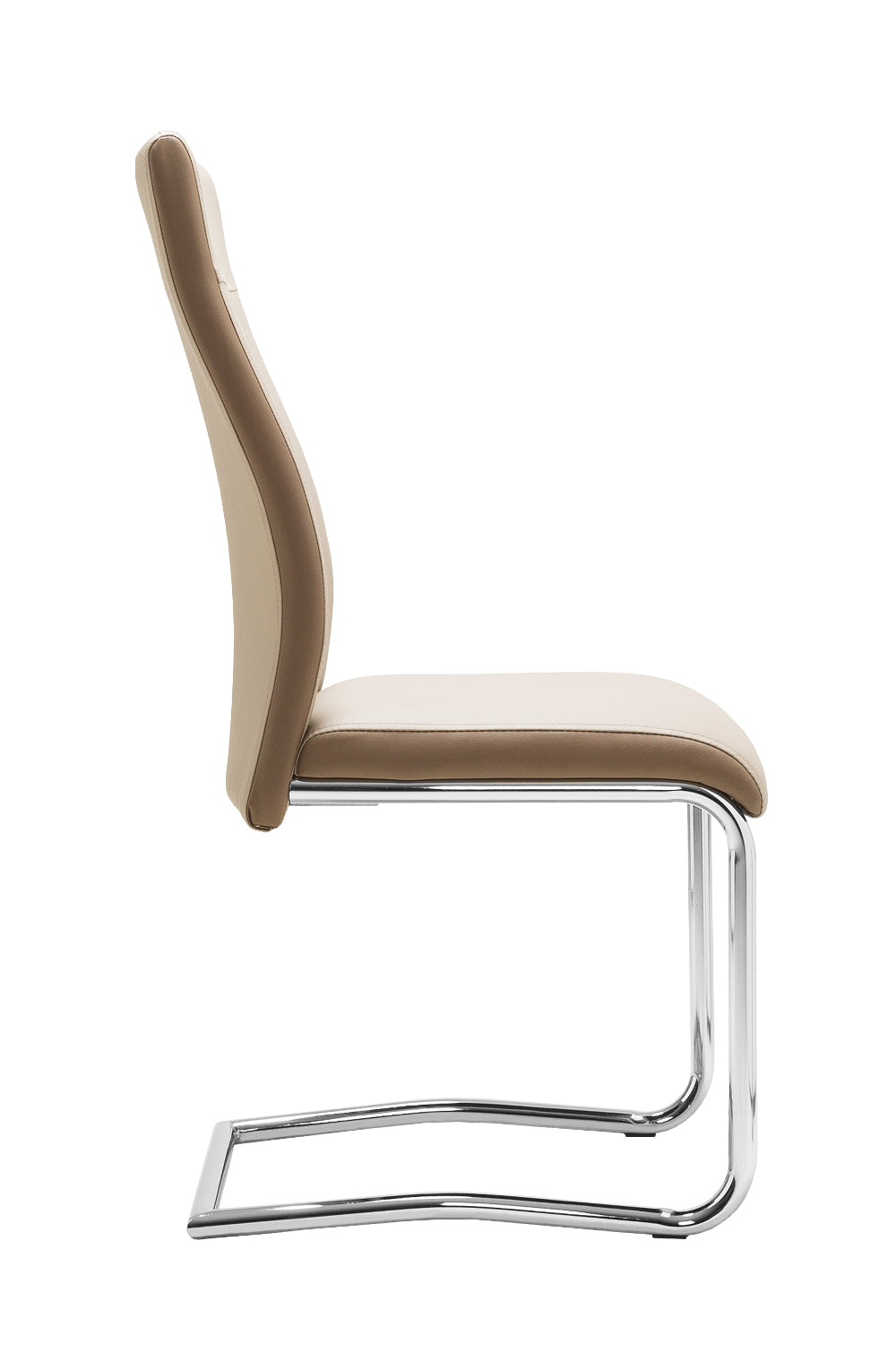 2er Set, Kunstleder Cappuccino/Braun, Metallgestell Chromfarbe. Größe: B/H/T ca. 43 x 98 x 55 cm. Sitzhöhe ca. 48 cm, Sitztiefe ca. 50 cm, maximale Belastbarkeit: ca. 120 kg.
