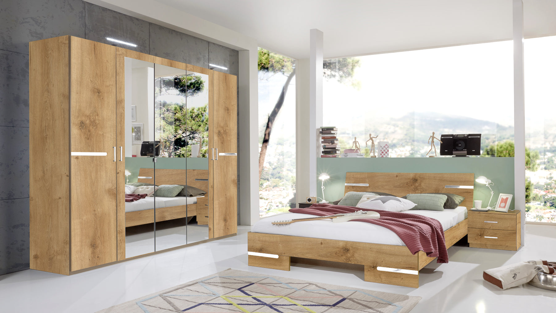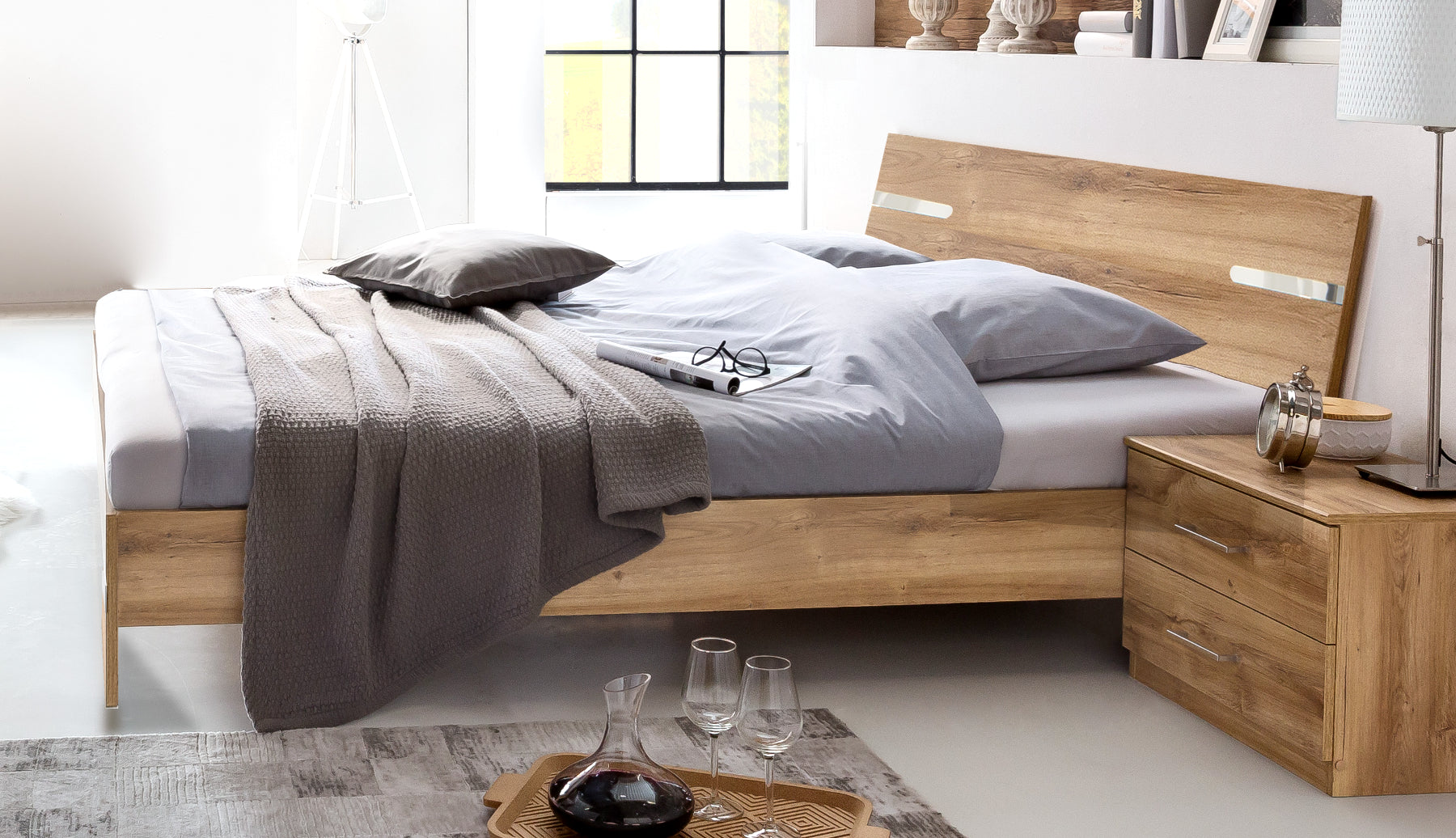 Eiche sägerau-Nachbildung. Ohne Deko, ohne Lattenrost, ohne Matratzen.