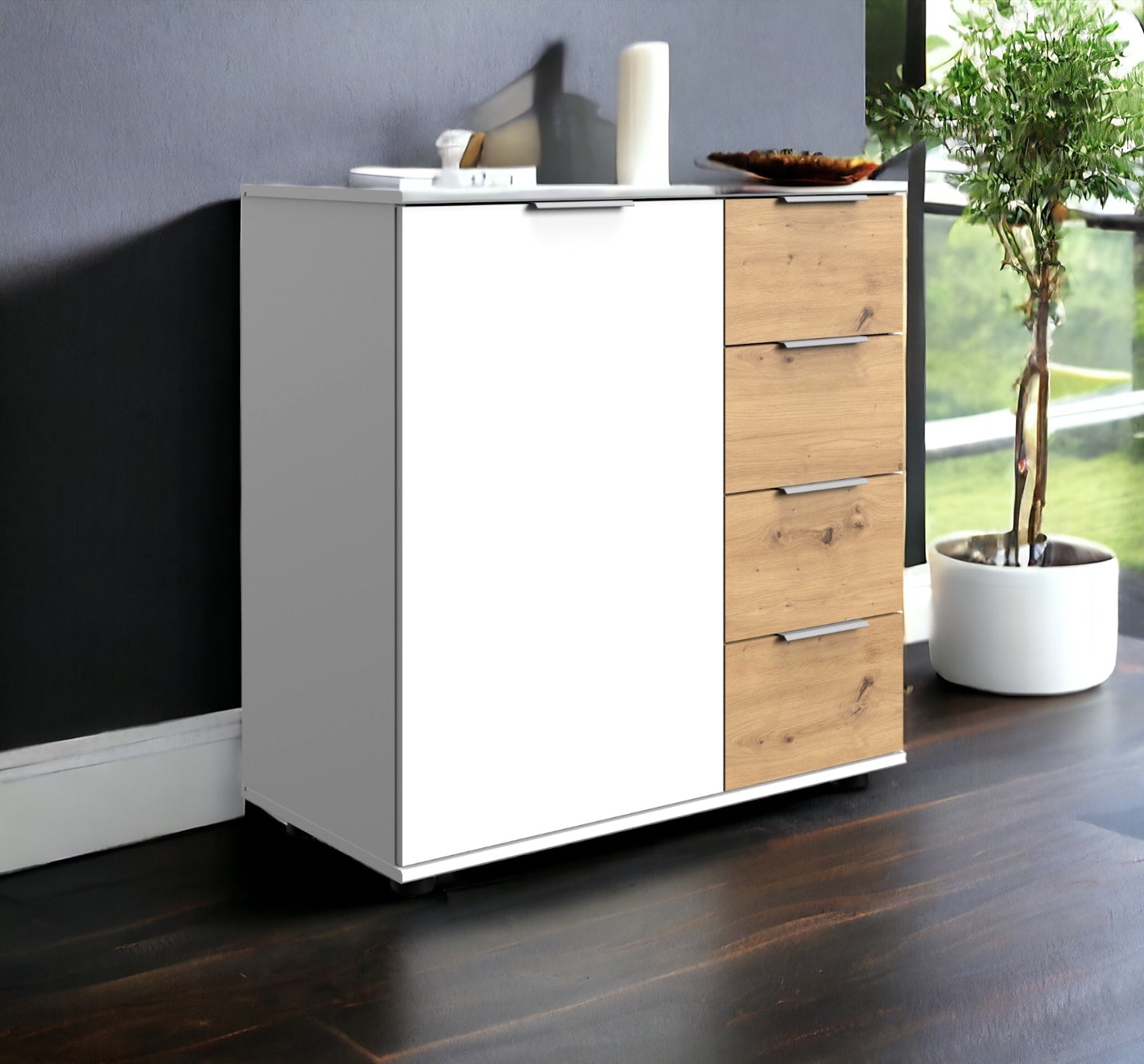 Entdecke die moderne Wimex Kombikommode Gibraltar! Mit einer Tür und 4 Schubladen bietet sie ausreichend Stauraum für Kleidung und Accessoires. In zeitlosem Design passt sie perfekt in jedes Schlafzimmer. Nutze jetzt die vielseitigen Einsatzmöglichkeiten und schaffe Ordnung und Stil in deinem Zuhause!