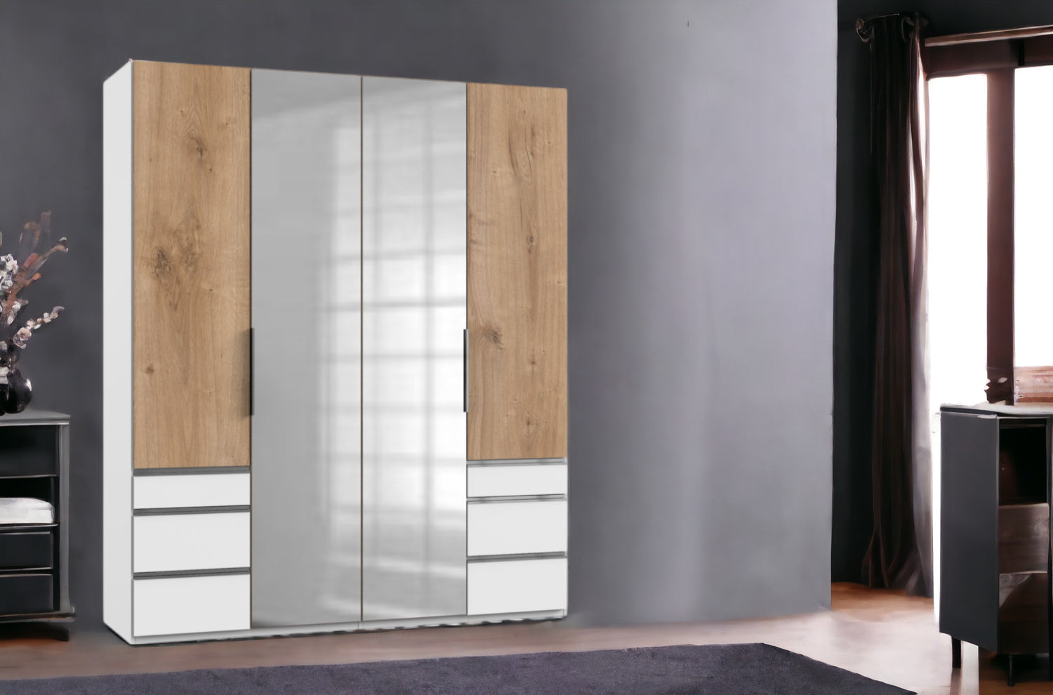 Erleben Sie den Wimex Drehtürenschrank Level 36A - ein wahres Stauraumwunder mit 4 Türen (2 davon als Spiegeltüren) und 6 Schubladen. Mit einer Höhe von 200 x 236 x 58 cm und 6 verschiedenen Farbvarianten passt er perfekt in jeden modernen und stilvollen Raum. Mit einer Höhe von 236 cm bietet dieser Schrank viel Platz für Ihre Kleidung und Accessoires. Öffnen und Schließen Sie die praktischen Drehtüren spielend leicht und lassen Sie Ihr Zimmer größer und heller wirken. Worauf warten Sie noch? Entscheiden Sie sich jetzt für diesen begeisternden Schrank.