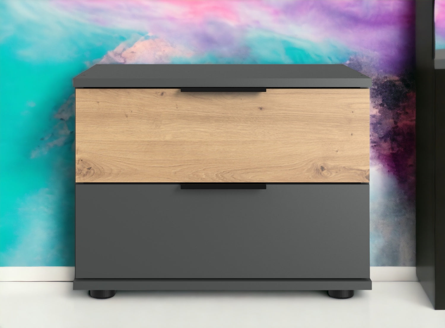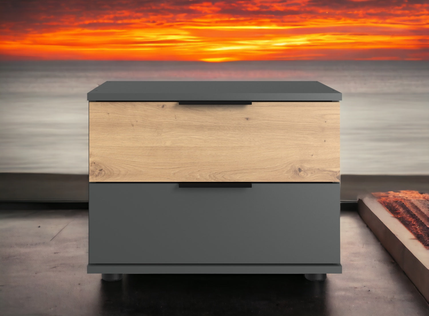 Mit 2 Schubladen. Dekor: Korpus und Front Graphit, Absetzung Artisan-Eiche-Nachbildung.