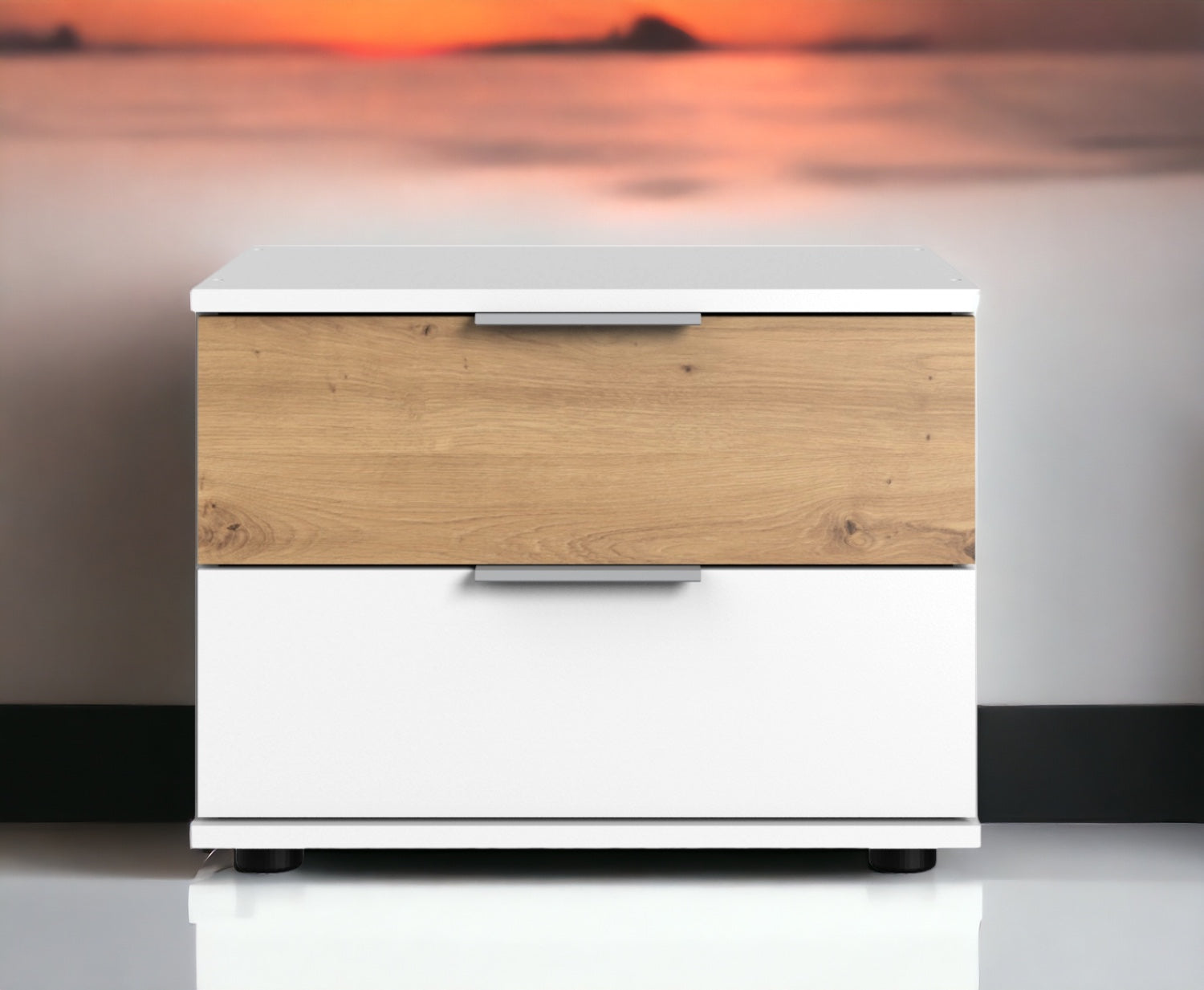 Der Wimex Nachtschrank Gibraltar fügt sich mit seinem modernen Design perfekt in jedes Schlafzimmer ein. Mit seinen 2 geräumigen Schubladen bietet er nicht nur Stauraum für Ihre persönlichen Gegenstände, sondern bringt auch eine stilvolle Note in Ihr Zuhause. In der Nacht haben Sie alles griffbereit im Blick, dank der praktischen Maße von ca. 52 x 40 x 38 cm. Gönnen Sie sich luxuriöses Flair mit dem Wimex Nachtschrank Gibraltar.