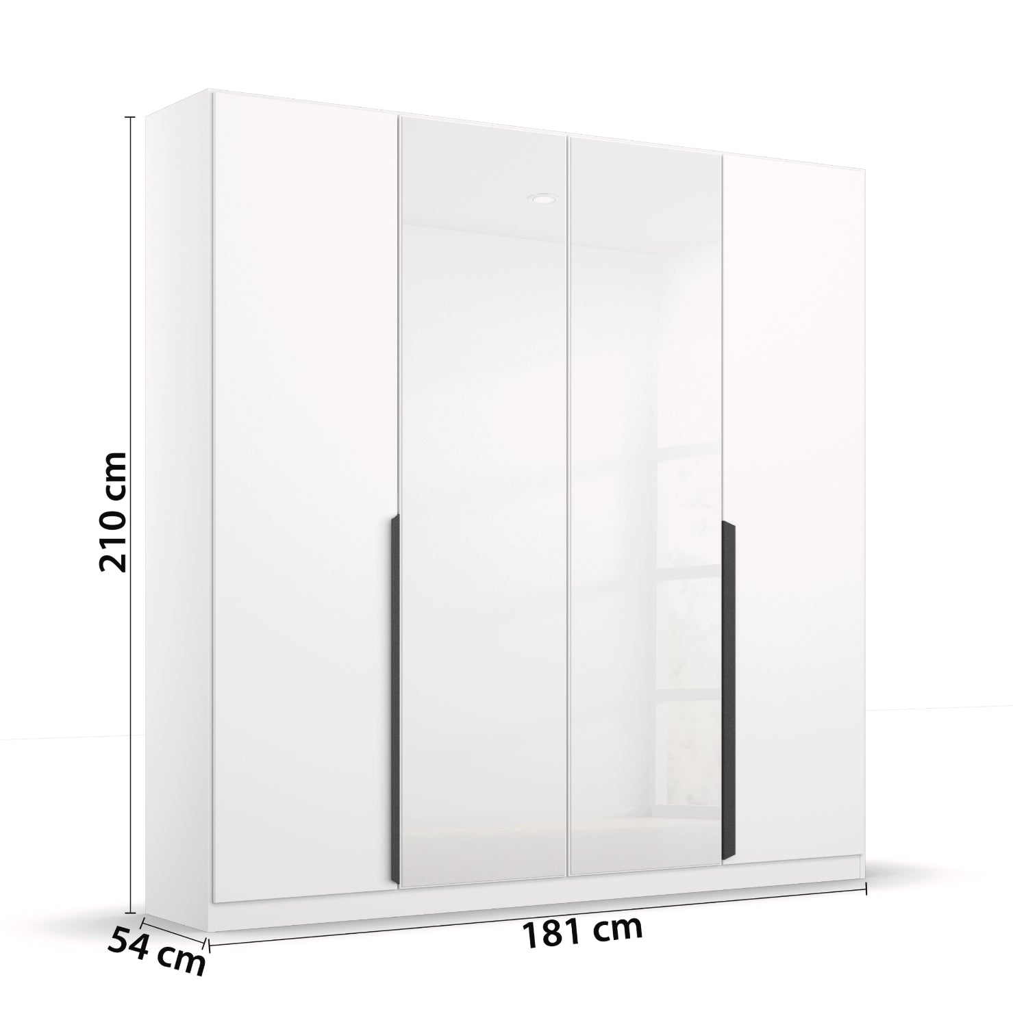 Entdecken Sie den modernen Rauch Drehtürenschrank "Artemis" mit 4 Türen und 2 Farbglastüren! Mit einer Größe von 180 x 210 x 54 cm bietet er viel Stauraum für Ihre Kleidung und Gegenstände. Die Farbglastüren verleihen dem Schrank eine elegante Optik und lassen zugleich Ihre Lieblingsstücke hervorstechen.