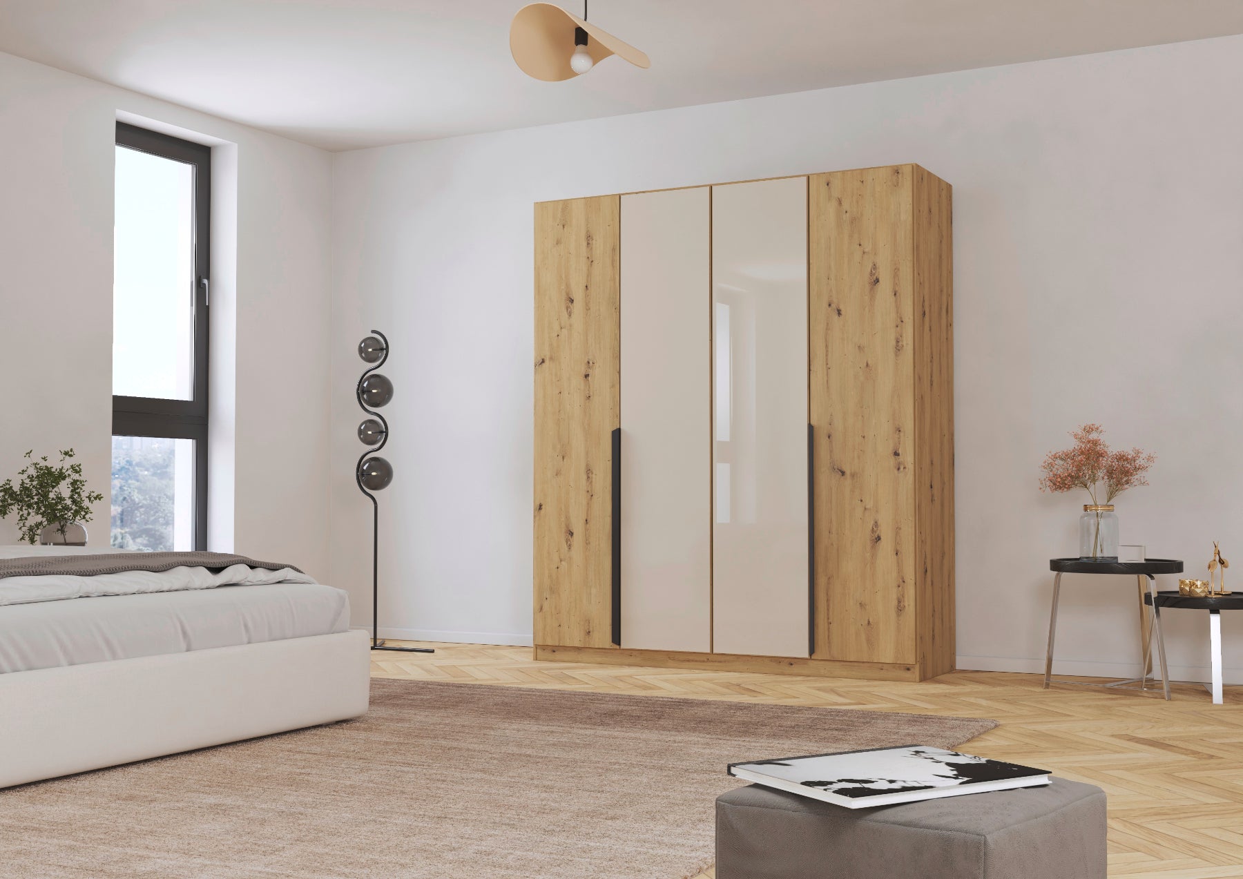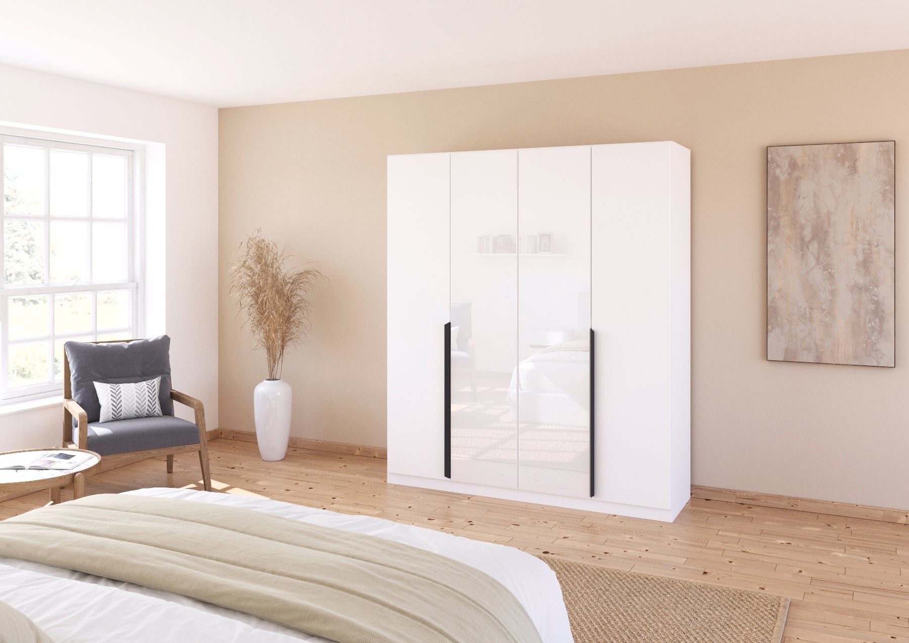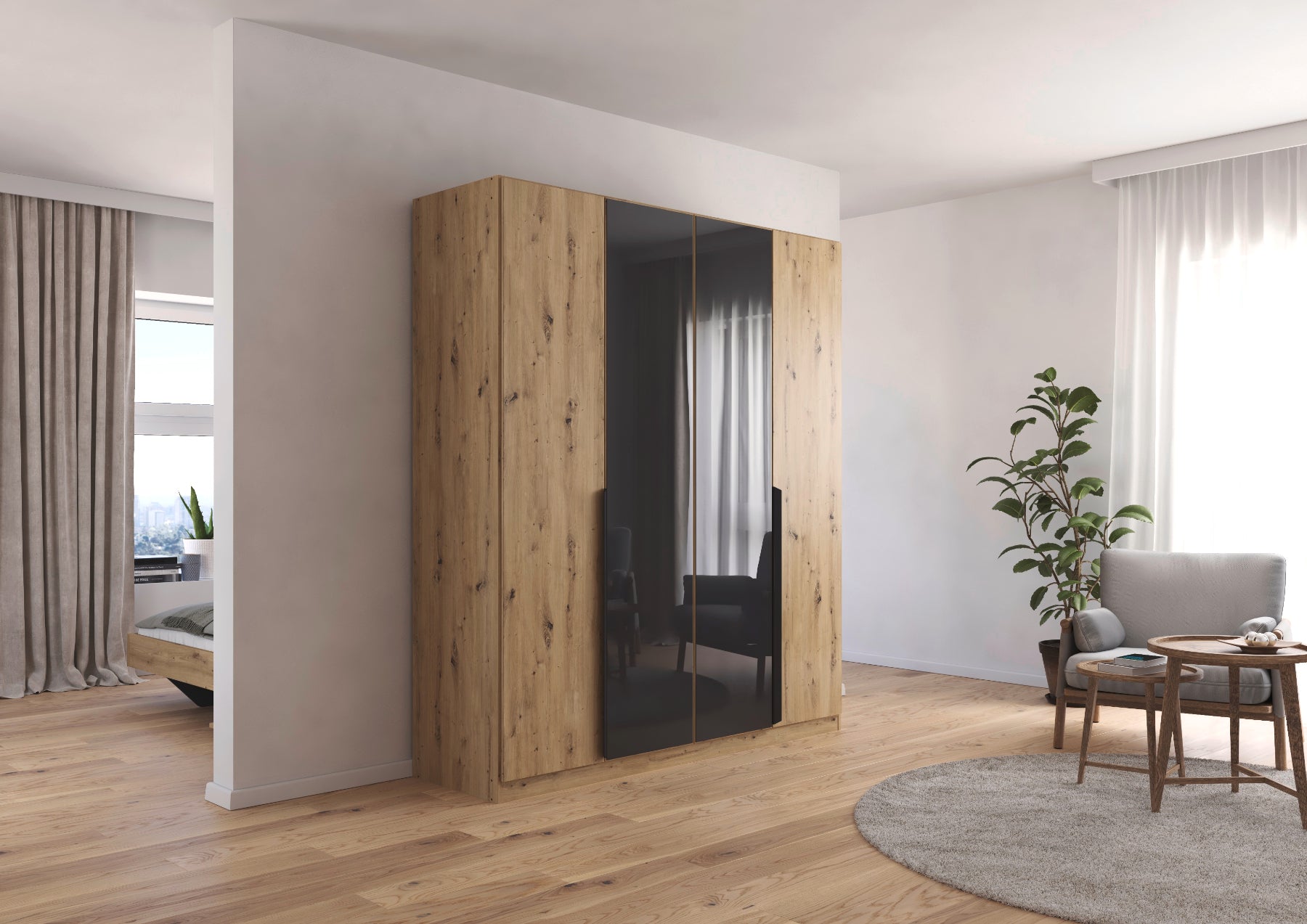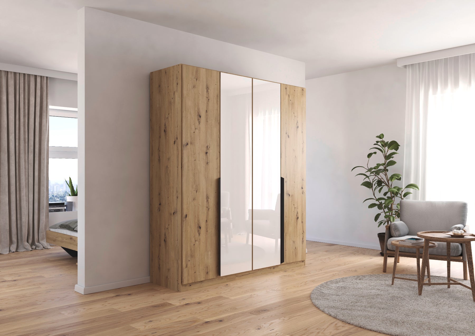 Drehtürenschrank Artemis 4-türig mit 2 Farbglastüren B/H/T 180 x 210 x 54 cm