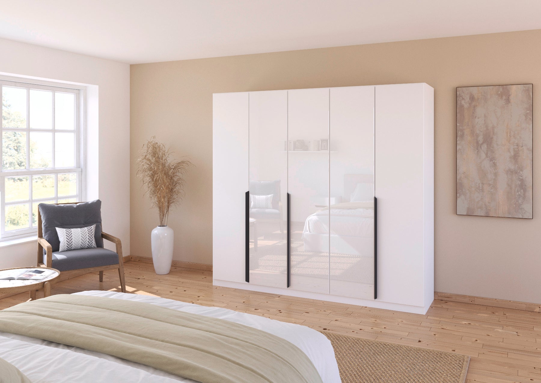 Drehtürenschrank Artemis 5-türig mit 3 Farbglastüren B/H/T 225 x 210 x 54 cm