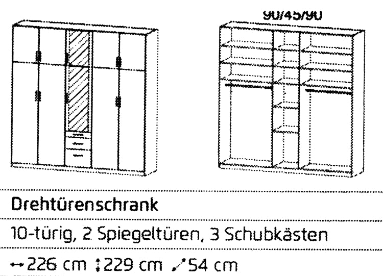 Drehtürenschrank Hildesheim 10-türig mit 2 Spiegeltüren und 3 Schubladen B/H/T ca. 225 x 230 x 54 cm