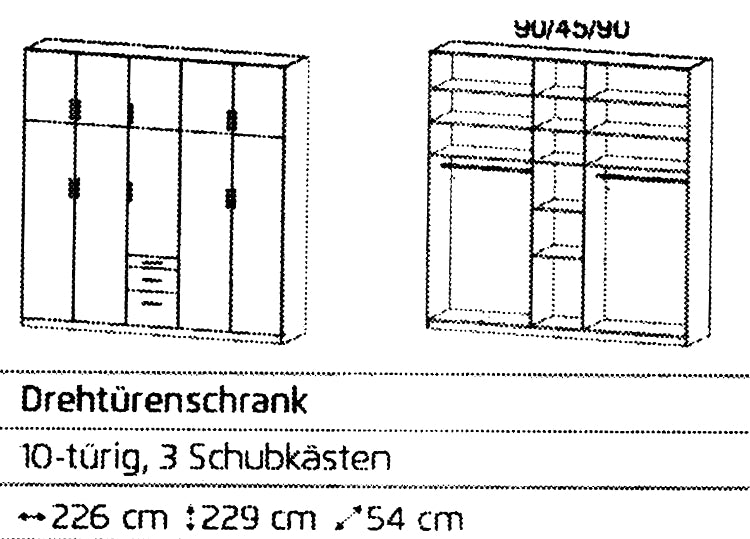Drehtürenschrank Hildesheim 10-türig mit 3 Schubladen B/H/T ca. 225 x 230 x 54 cm