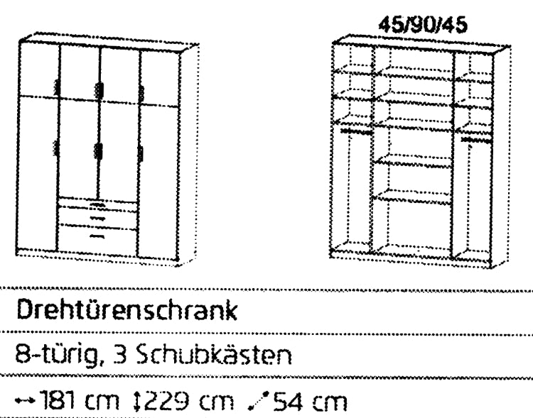 Drehtürenschrank Hildesheim 8-türig mit 3 Schubladen B/H/T ca. 180 x 230 x 54 cm