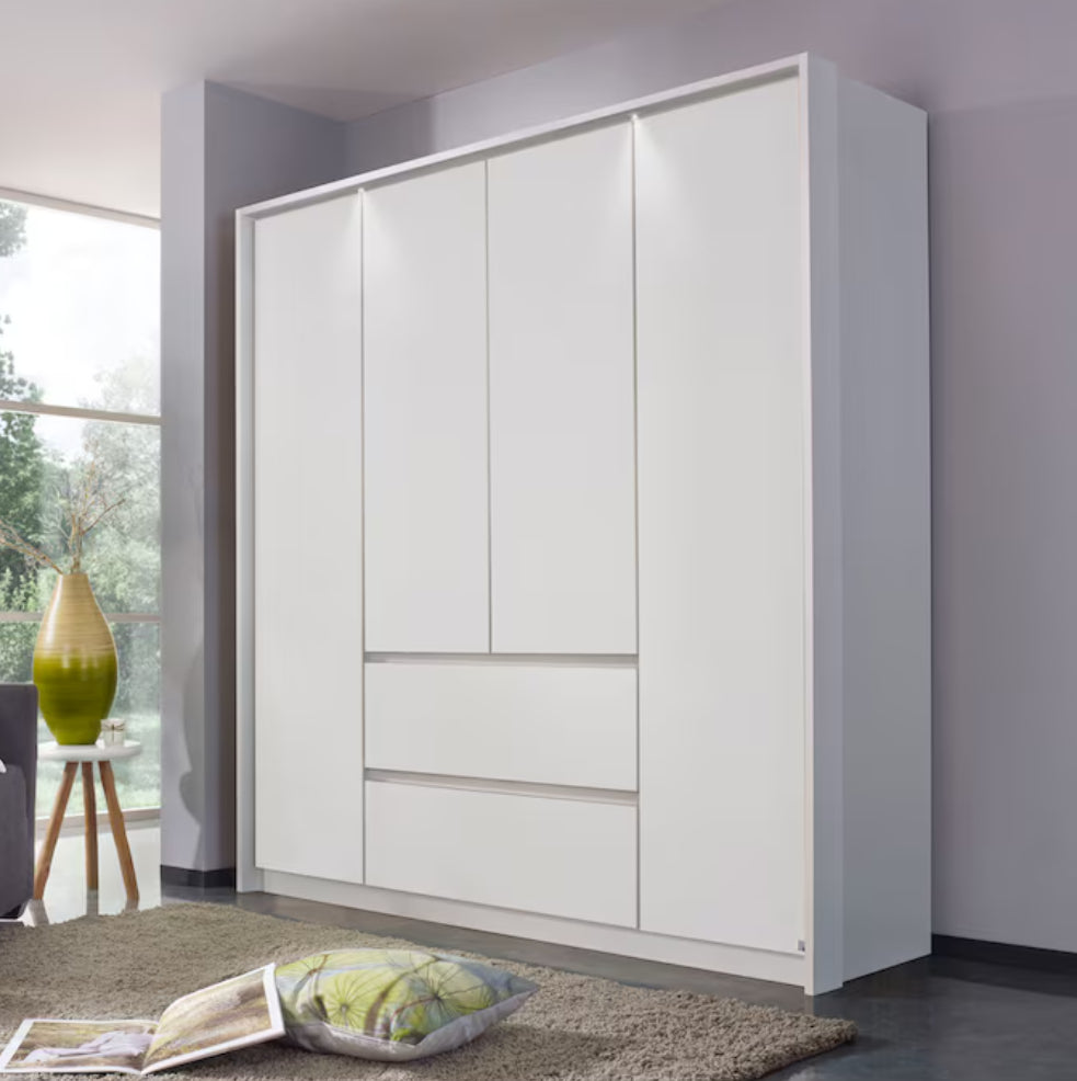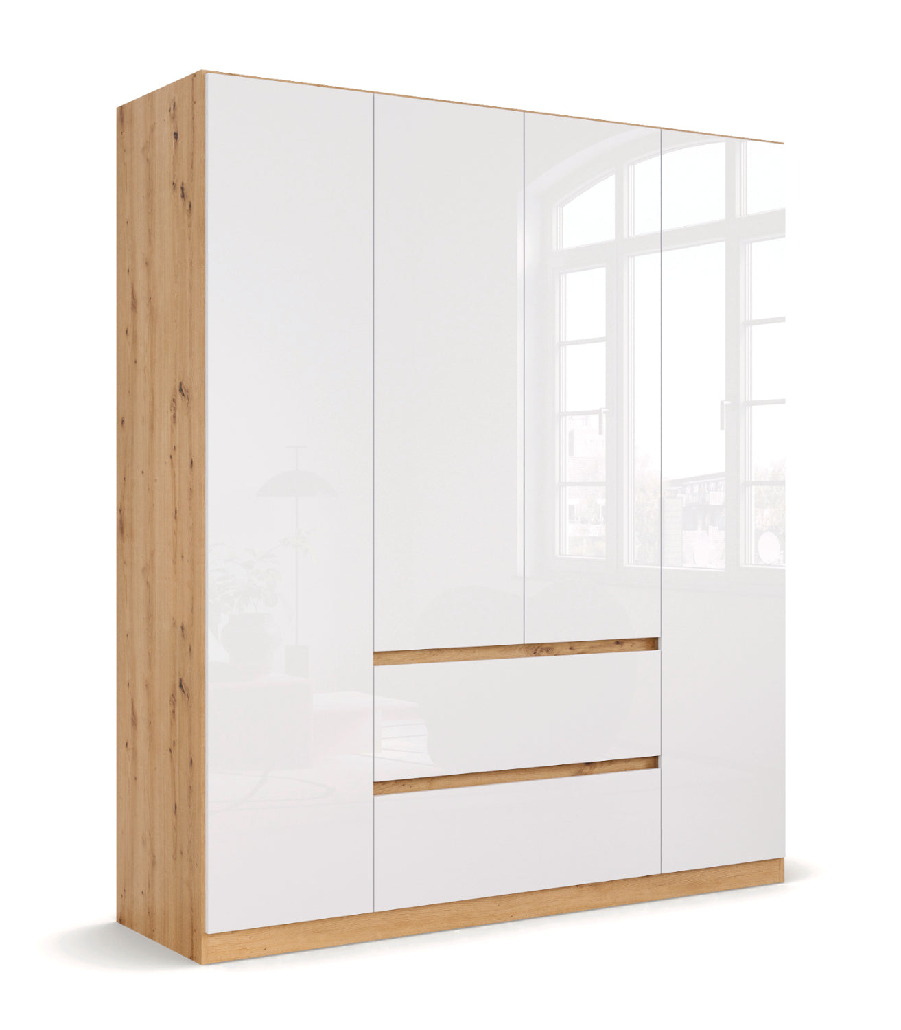 Modern und platzsparend - der Rauch Drehtürenschrank Mainz bietet mit seinen 4 Farbvarianten eine zeitgemäße Lösung für die Aufbewahrung Ihrer Kleidung und Accessoires. Mit 2 Schubladen und einer Größe von ca. 180 x 210 x 54 cm bietet er ausreichend Stauraum, um Ihr Zuhause aufgeräumt zu halten. Die grifflose Gestaltung und die Push to open Funktion sorgen für eine moderne und komfortable Bedienung. Wählen Sie zwischen einer Hochglanzfront in Weiß oder Grau, um Ihrem Raum ein elegantes Ambiente zu verleihen.