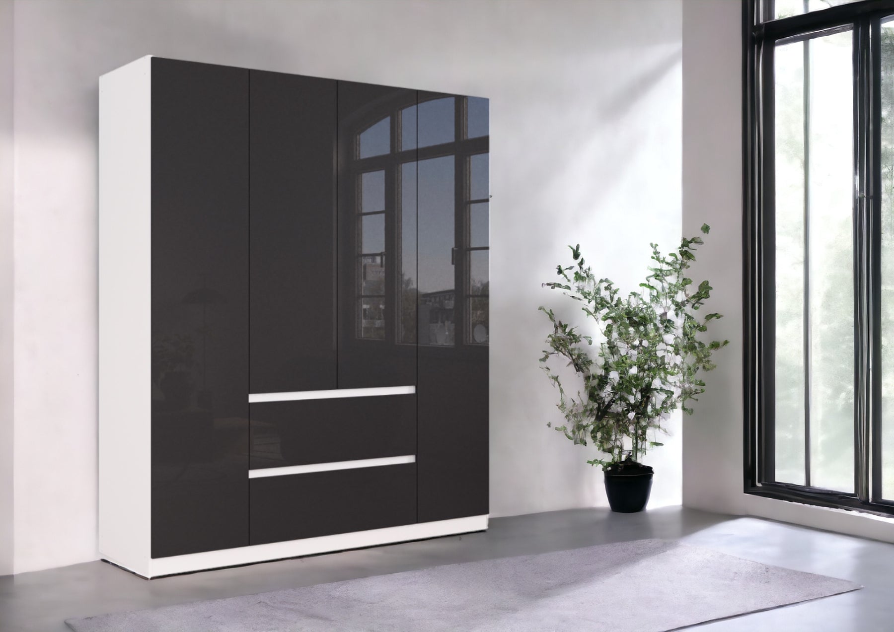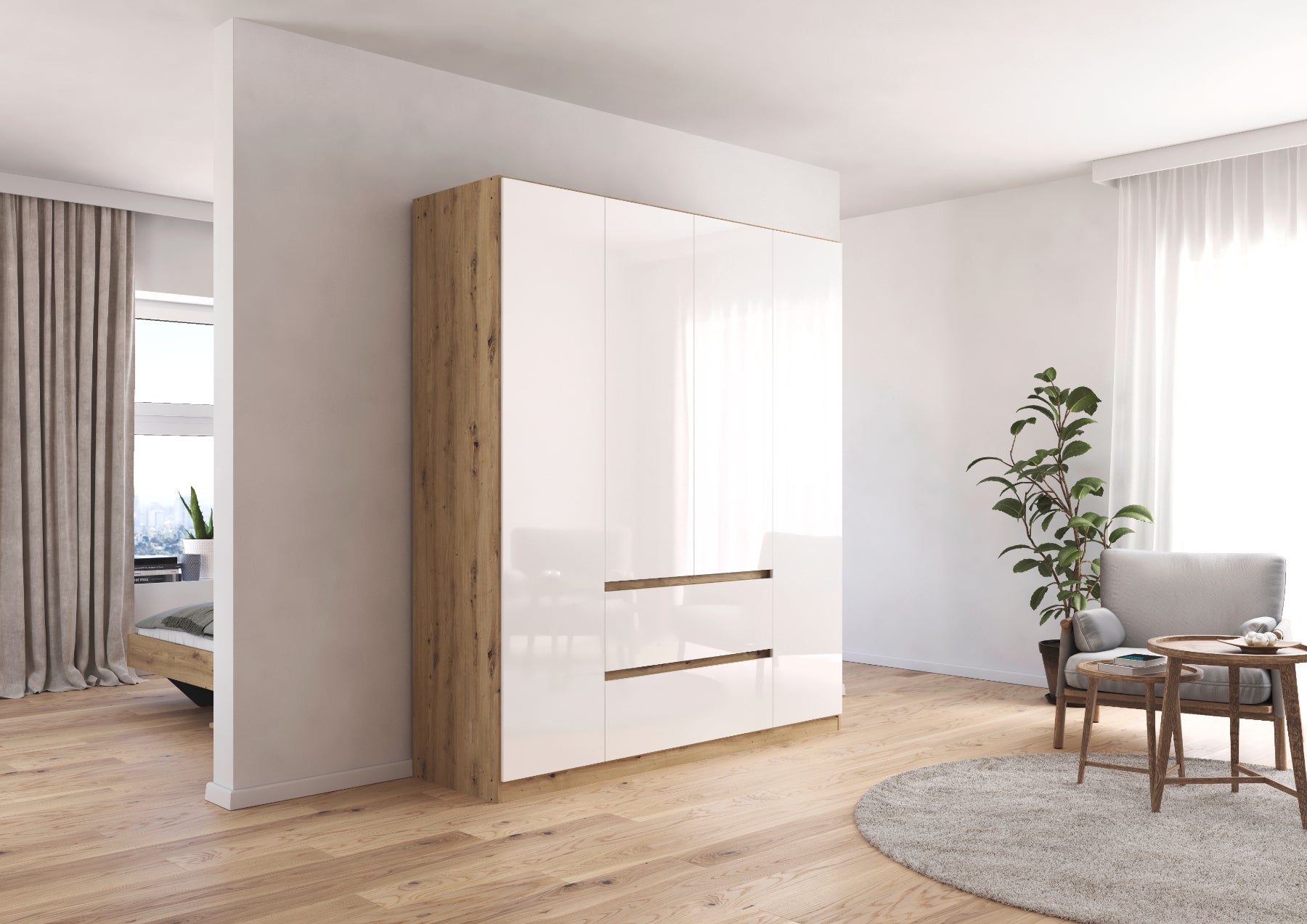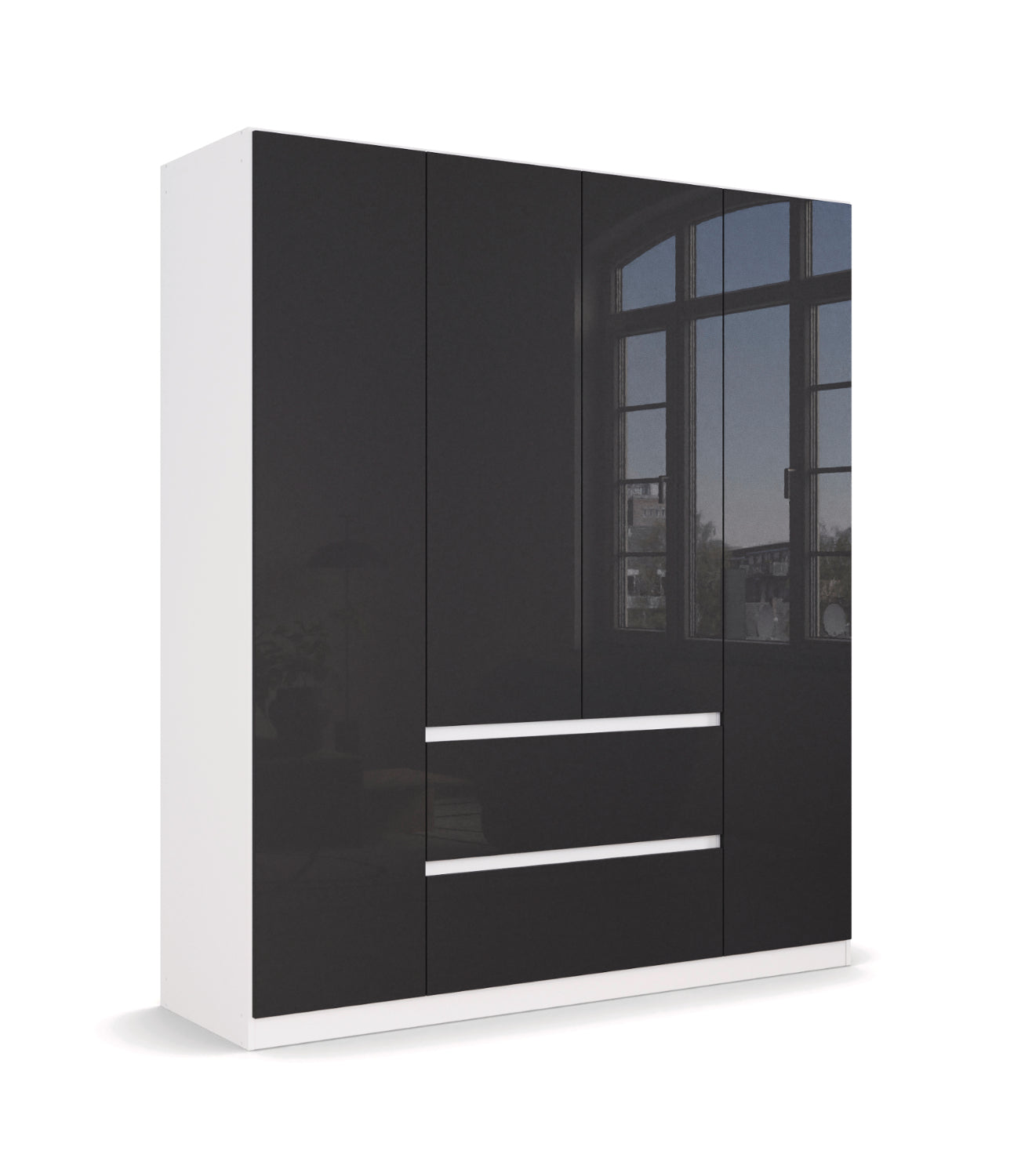 Drehtürenschrank Mainz Hochglanzfront 4-türig mit 2 Schubladen B/H/T ca. 180 x 210 x 54 cm