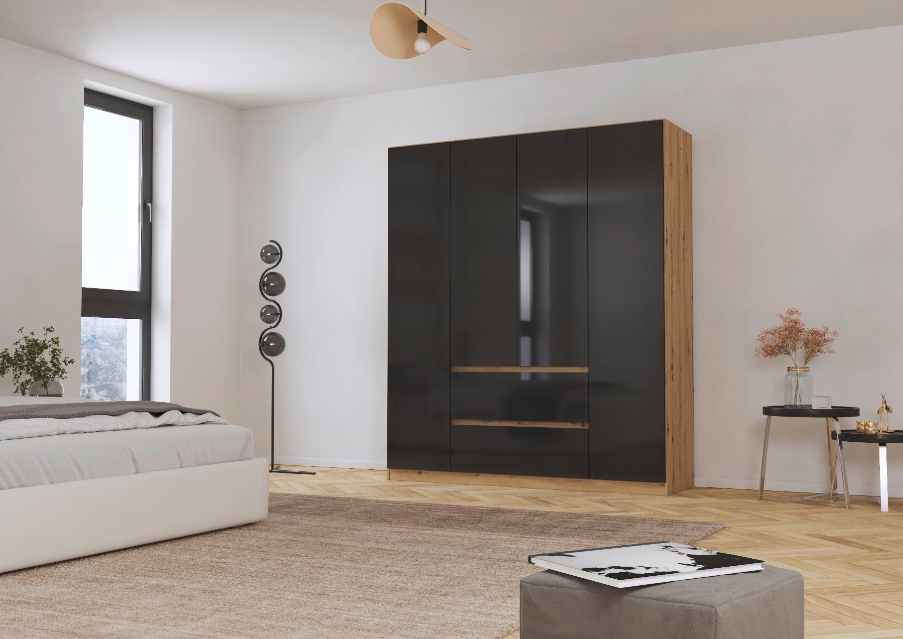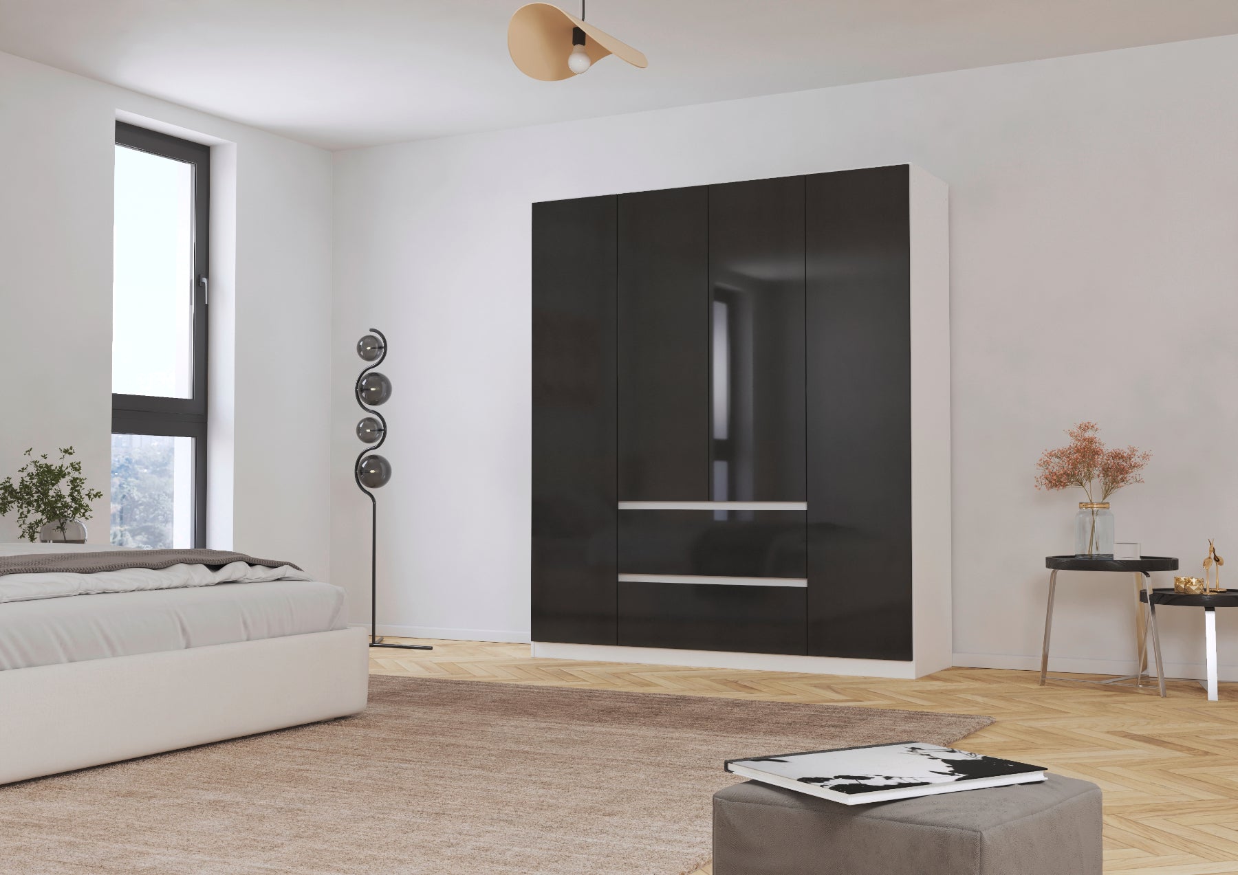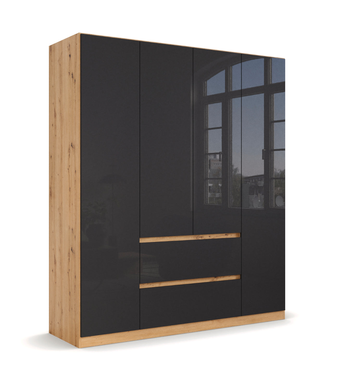 Drehtürenschrank Mainz Hochglanzfront 4-türig mit 2 Schubladen B/H/T ca. 180 x 210 x 54 cm