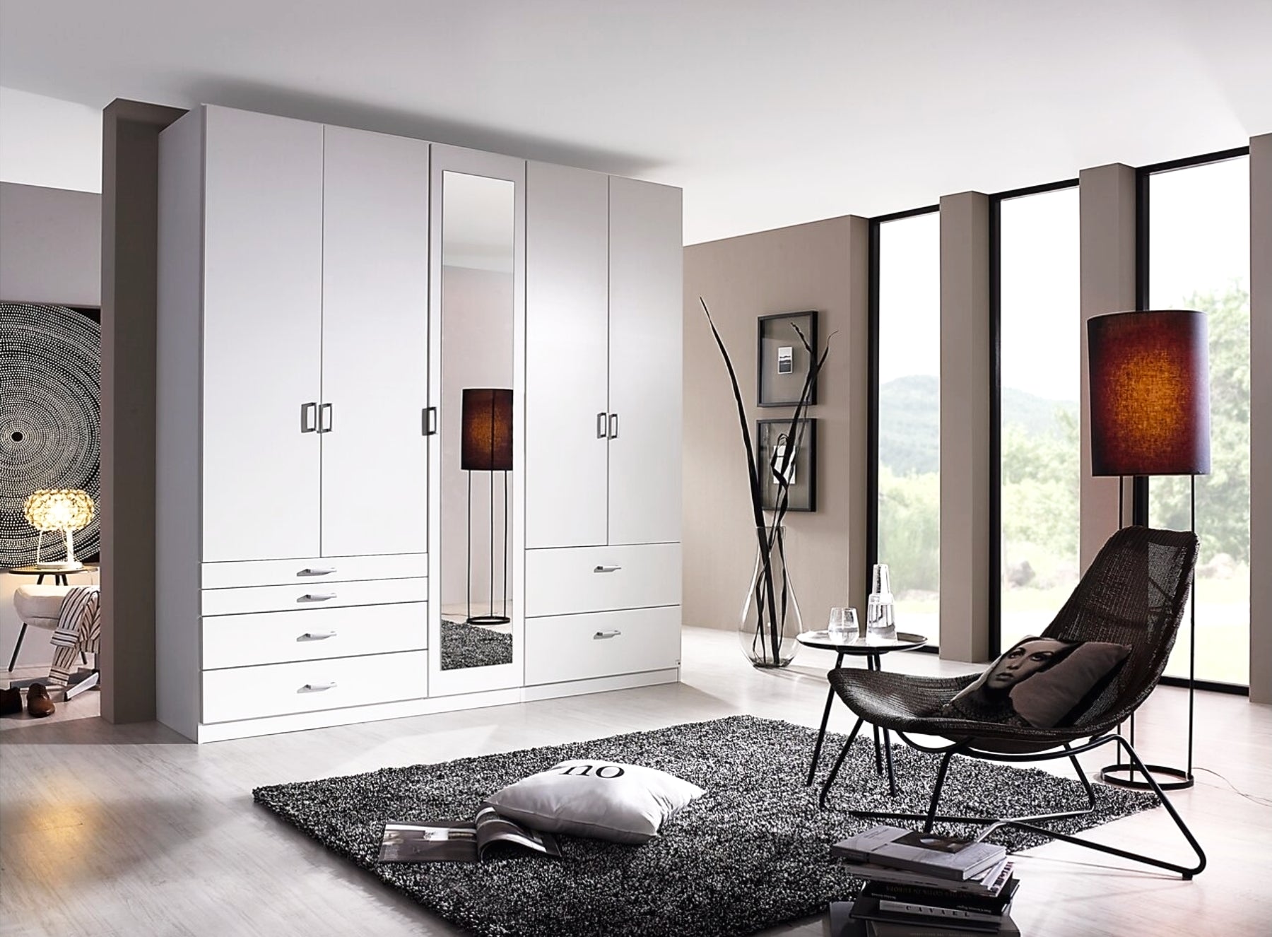Der elegante Rauch Drehtürenschrank Wildberg ist der perfekte Aufbewahrungsort für all Ihre Kleidung und Accessoires. Mit fünf Türen, davon eine mit Spiegel und sechs geräumigen Schubladen, bietet er ausreichend Platz für Ihre persönlichen Gegenstände. Erhältlich in drei modernen Farben: Alpinweiß, Eiche Sonoma und Grau-metallic. Organisieren Sie Ihr Leben stilvoll und praktisch mit diesem 225 x 210 x 58 cm großen Schrank!