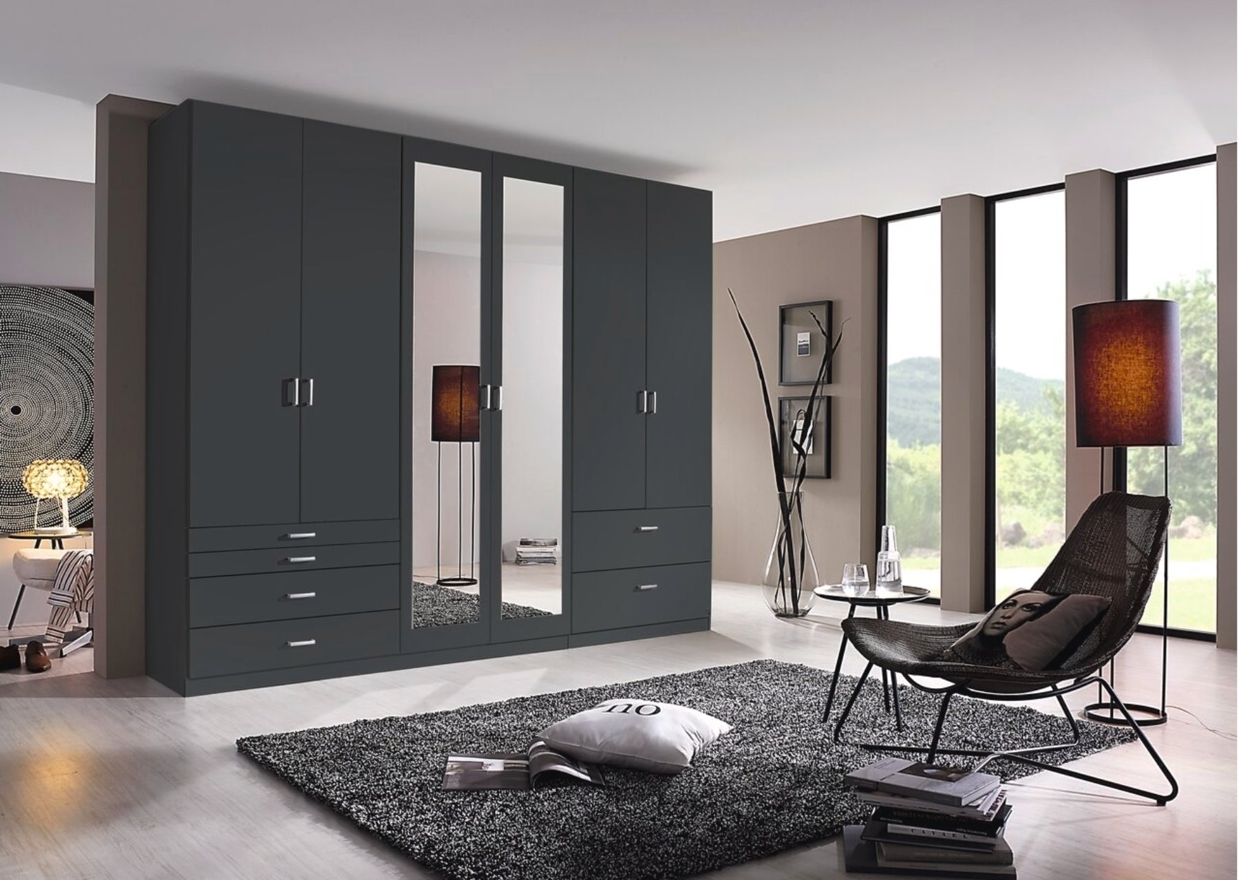 Der Rauch Drehtürenschrank Wildberg ist ein elegantes und luxuriöses Möbelstück. Mit 6 Türen, darunter 2 Spiegeltüren und 6 Schubladen, bietet er viel Stauraum für Kleidung und Accessoires. Erhältlich in den Farben Alpinweiß, Eiche Sonoma und Grau-metallic, fügt er sich perfekt in jedes stilvolle Interieur ein.