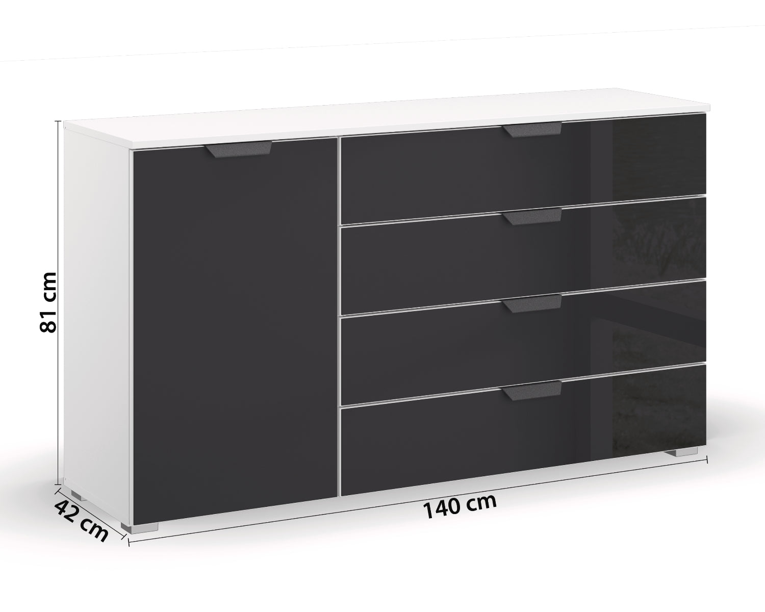 Kombikommode Artemis mit Tür und 4 Schubladen Farbglas, B/H/T ca. 140 x 81 x 42 cm