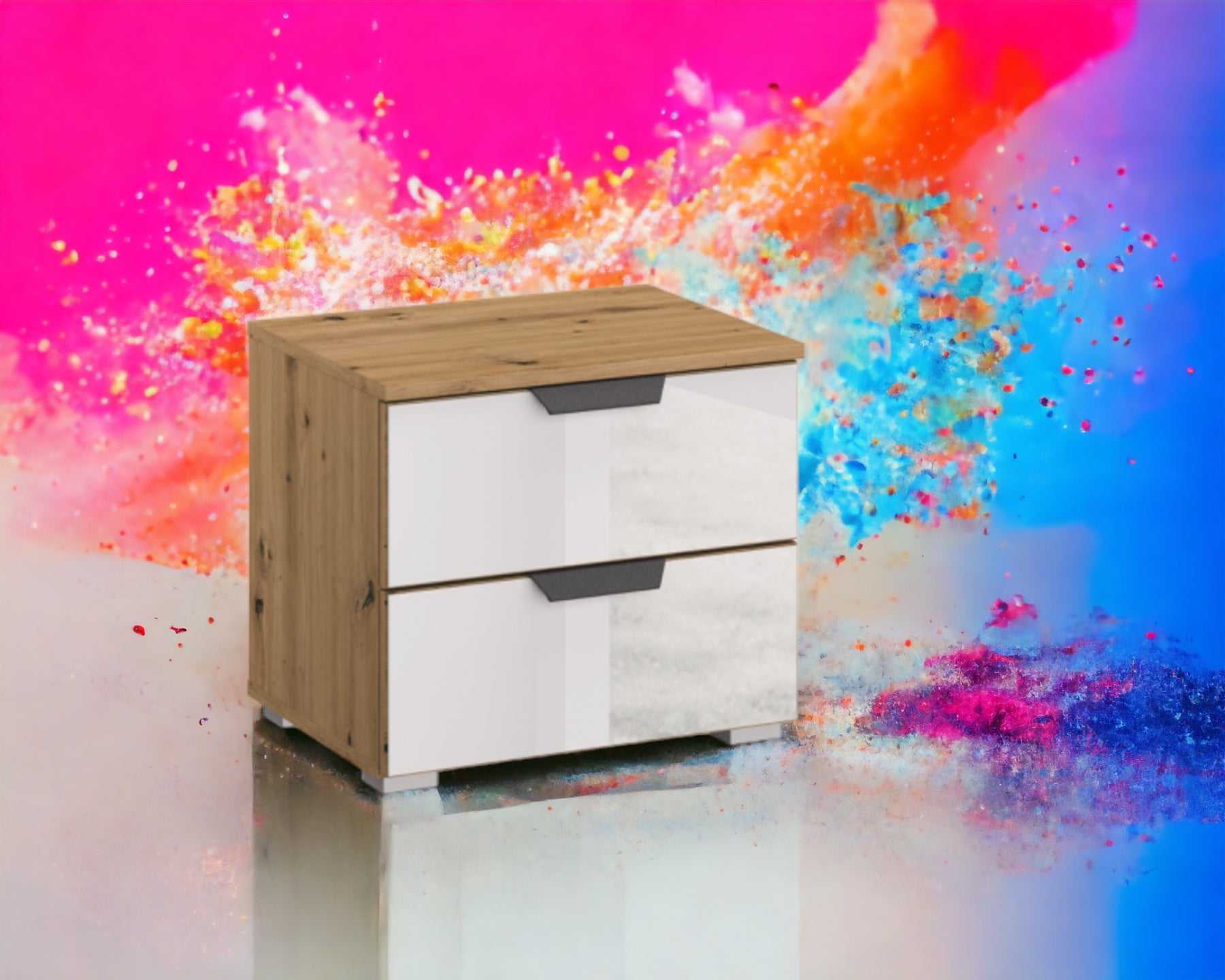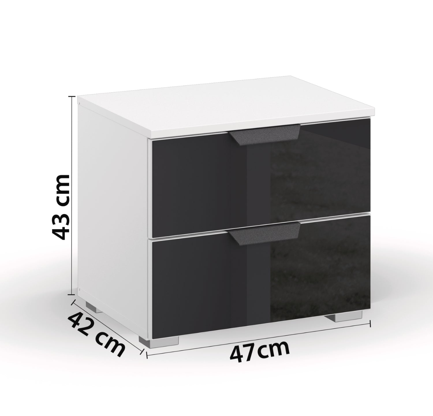 Nachtschrank Artemis mit 2 Schubladen Farbglas, B/H/T ca. 47 x 43 x 42 cm
