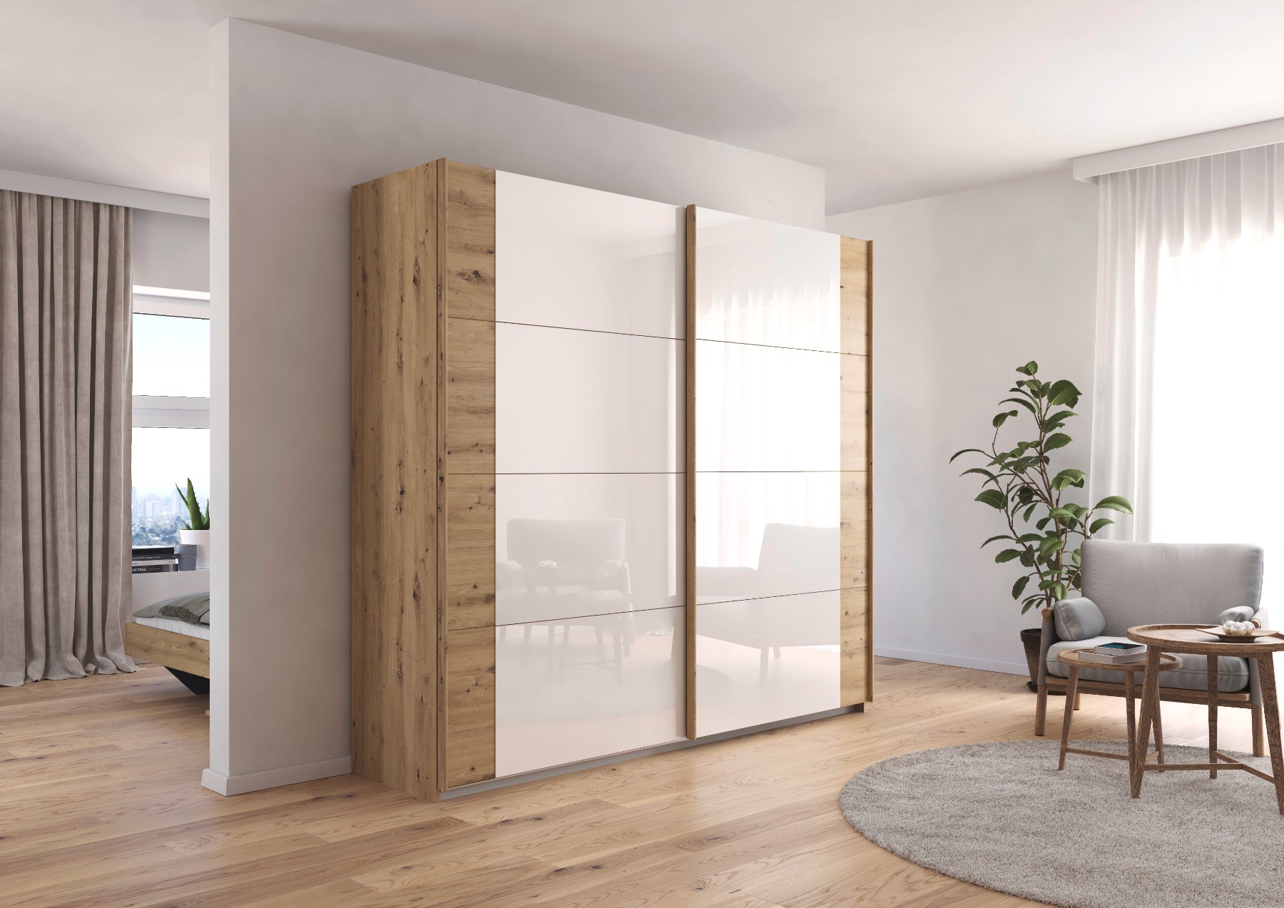 Bringen Sie mit dem Rauch Schwebetürenschrank Artemis stilvolles Design in Ihr Zuhause! Die modernen, schwebenden Türen aus Farbglas lassen den Schrank optisch leichter wirken und sorgen für eine klare Ästhetik. Mit einer Breite von 225 cm und einer Höhe von 210 cm bietet der Schrank viel Stauraum auf kompaktem Raum. Perfekt für jeden, der Funktionalität und Design in einem Möbelstück vereint haben möchte.