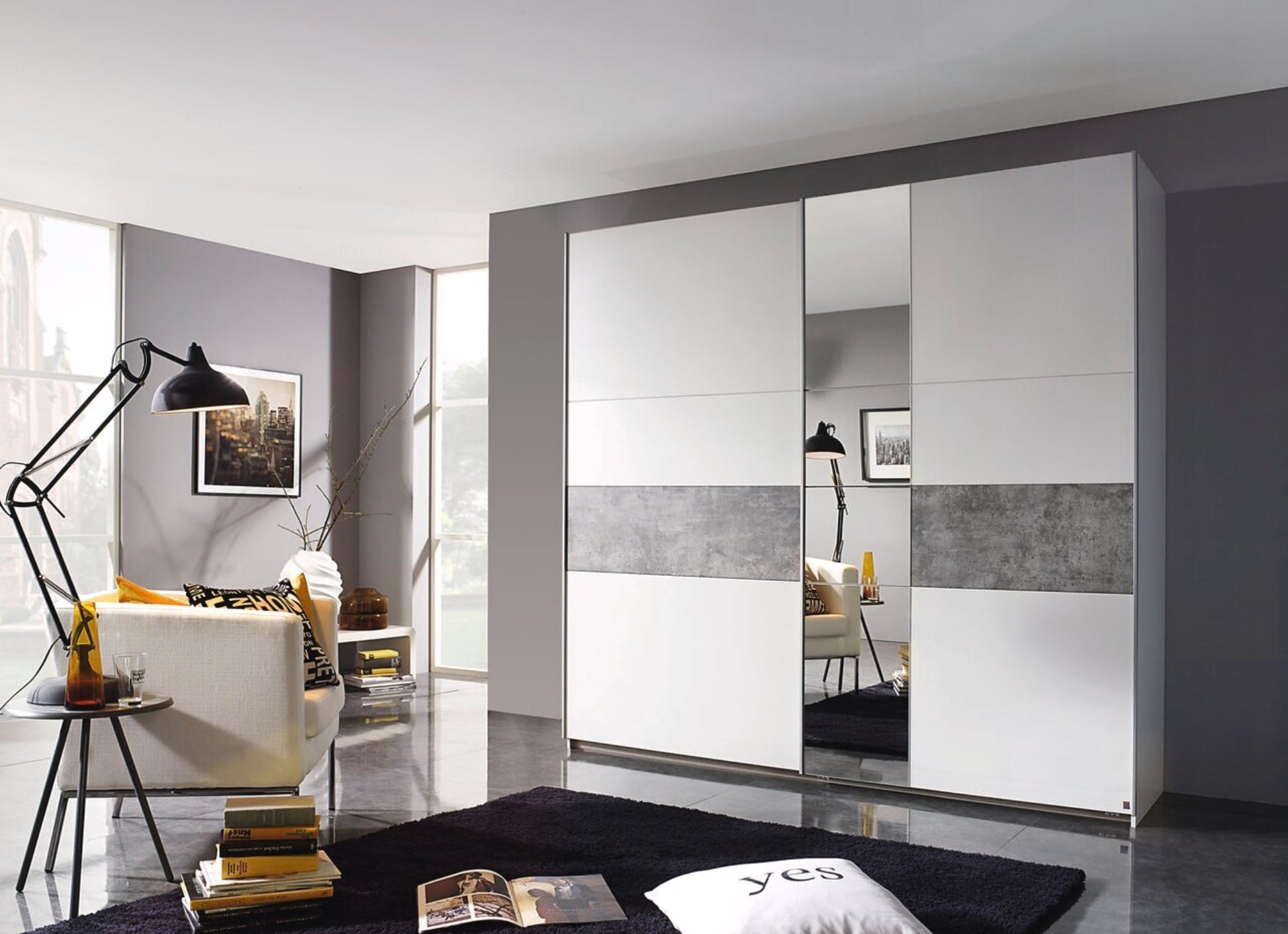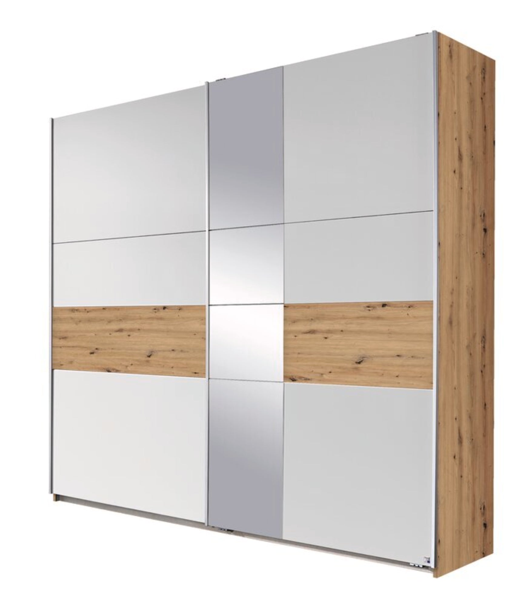 Schwebetürenschrank Korbach 2-türig mit Teilspiegelfront B/H/T 218 x 210 x 59 cm, Zubehör Premium