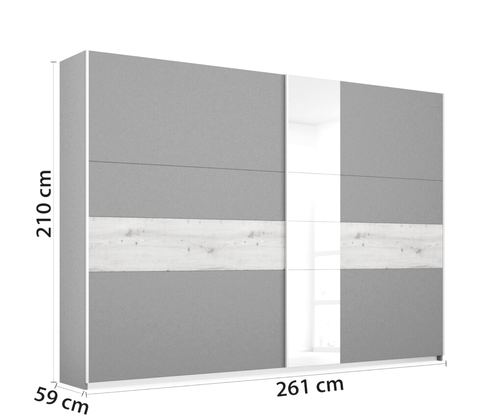Schwebetürenschrank Korbach 2-türig mit Teilspiegelfront B/H/T 261 x 210 x 59 cm, Zubehör Premium