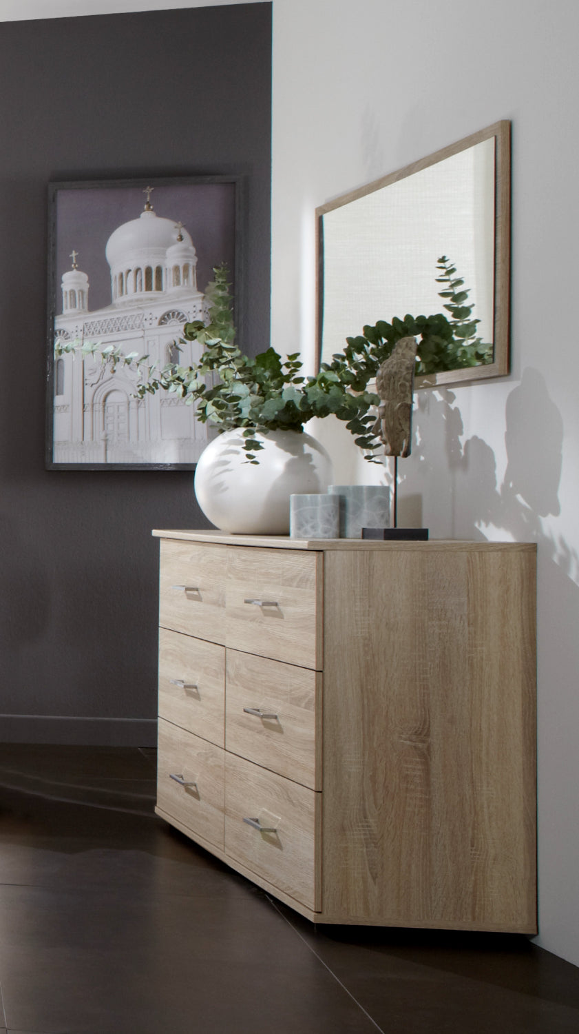 6 Schubladen, Dekor: Eiche sägerau-Nachbildung.