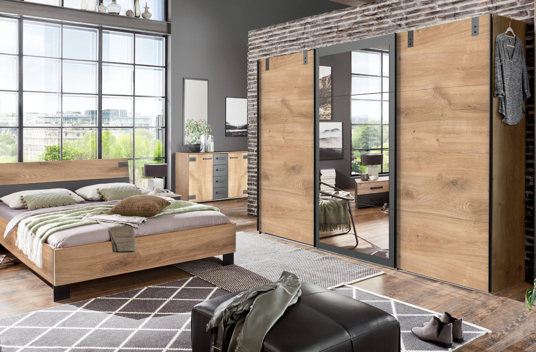 Machen Sie einen mutigen Statement mit dem modernen Schwebetürenschrank Malmö! Mit 3 Türen, einschließlich einer Teilspiegeltür in der Mitte, bietet er viel Platz für Ihre Kleidung und Accessoires. Holen Sie sich ein Stück Herausforderung und Abenteuer mit den Maßen von 270 x 208 x 65 cm in Ihr Schlafzimmer!