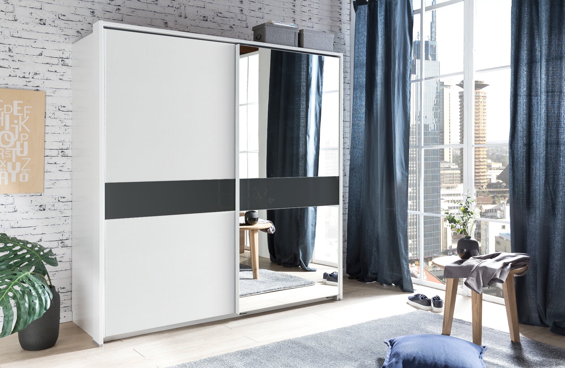 Schwebetürenschrank Weimar 2-türig mit Spiegeltür B/H/T ca. 180 x 198 x 65 cm