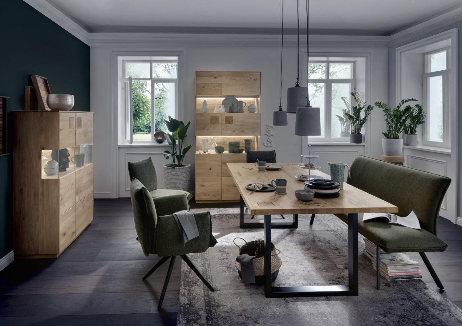 2 Glastüren, Wildeiche Natur geölt, inkl. Beleuchtung, Push to Open Funktion. Lieferzeit ca. 5-8 Wochen.