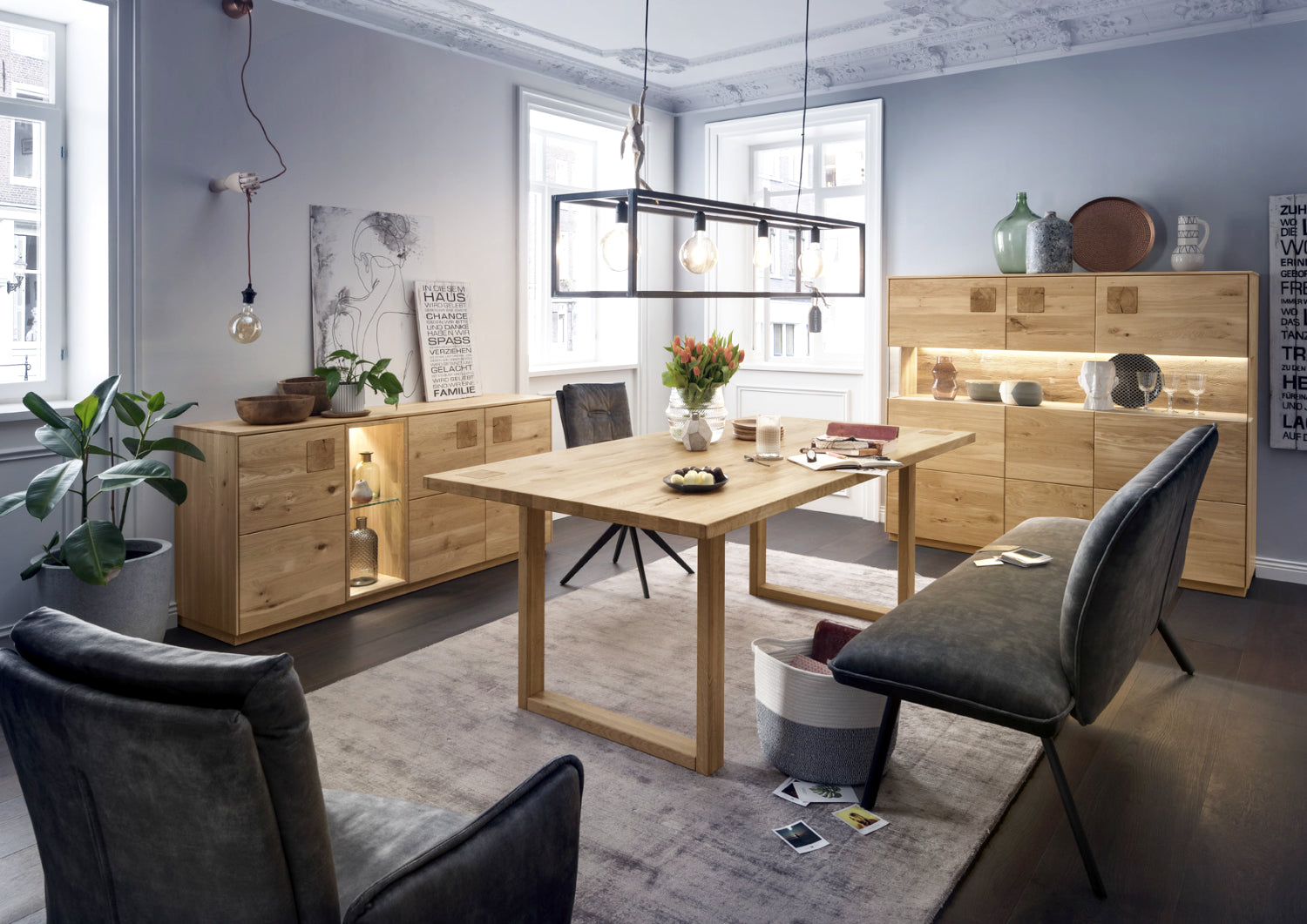 Das TPT Davos Sideboard 3-türig ist nicht nur modern, sondern auch aus massiver Wildeiche gefertigt. Die Fronten sind kunstvoll mit Hirnholz-Elementen verziert, die der Vitrine einen exklusiven und anspruchsvollen Look verleihen. Die geschliffenen und gebürsteten Rückwände aus Wildeiche mit integrierter LED-Beleuchtung sorgen für ein einzigartiges Ambiente. Bietet viel Stauraum und passt mit seinen Maßen von 170 x 80 x 44 cm perfekt in jede Einrichtung. Einfach inspirierend! Erhalten Sie kostenlosen Versand und Montage beim Kauf des TPT Davos Sideboards! Mit einer Oberflächenbehandlung aus naturbelassenem Öl bietet es nicht nur einen natürlichen Glanz, sondern auch eine optimale Pflege. Wählen Sie zwischen dem Natur-Design oder hellen Blanco-Design aus massiver, geölter Wildeiche. Mit der praktischen Push-to-Open-Funktion bieten sich keine störenden Griffe, sondern ein eleganter Zugang zu großzügigem Stauraum. Perfekt für ein stilvolles Wohnambiente. Jetzt kaufen und profitieren!