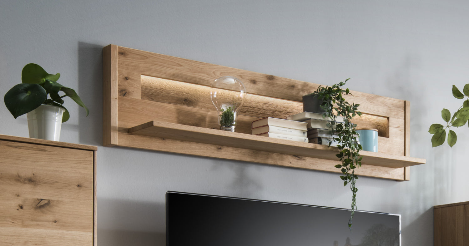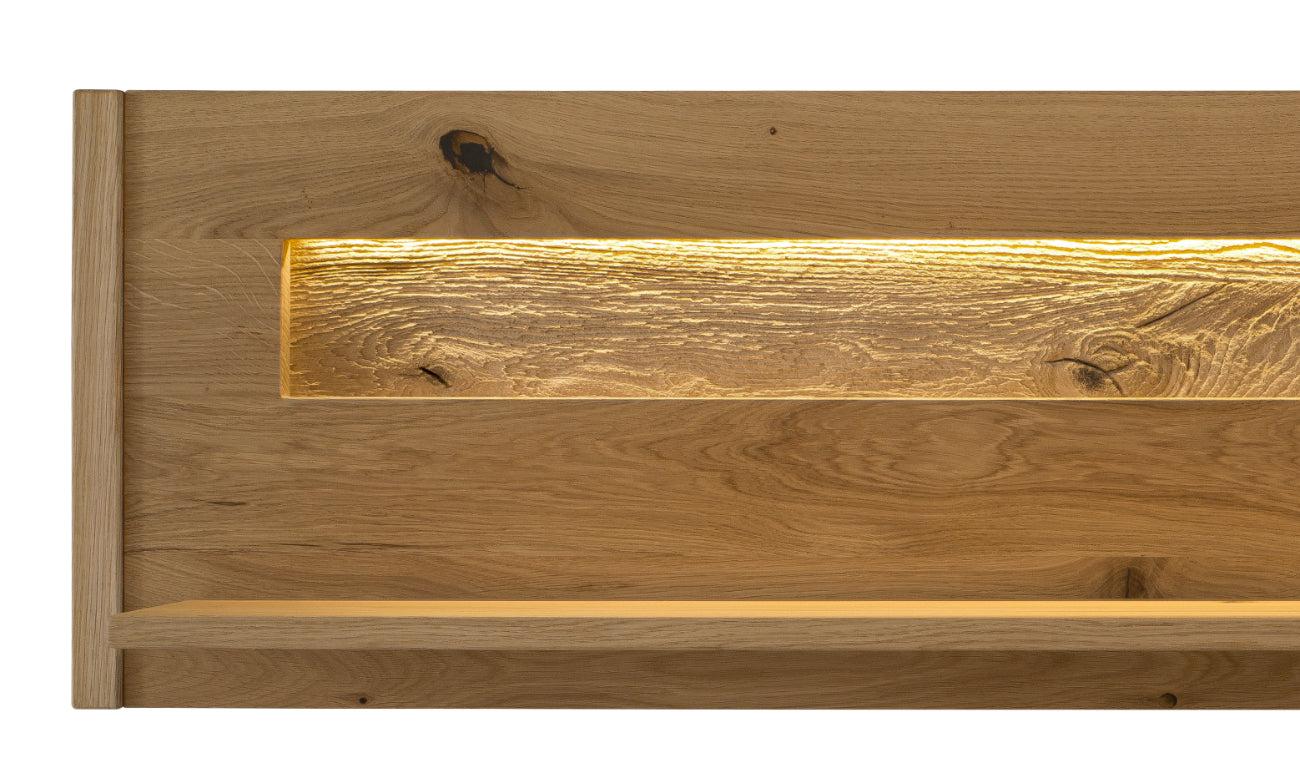 TPT Davos Wandregal Wildeiche massiv natur/blanco geölt, inkl. Beleuchtung B/H/T 155 x 24 x 38 cm