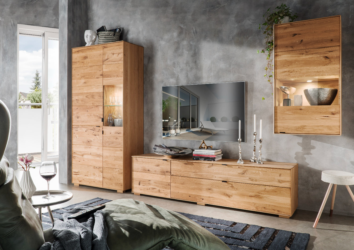 TPT Zerro Wohnzimmer-Set 3-teilig inkl. Beleuchtung, massiver Kernbuche/Eiche