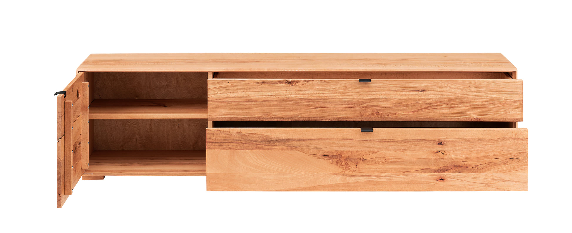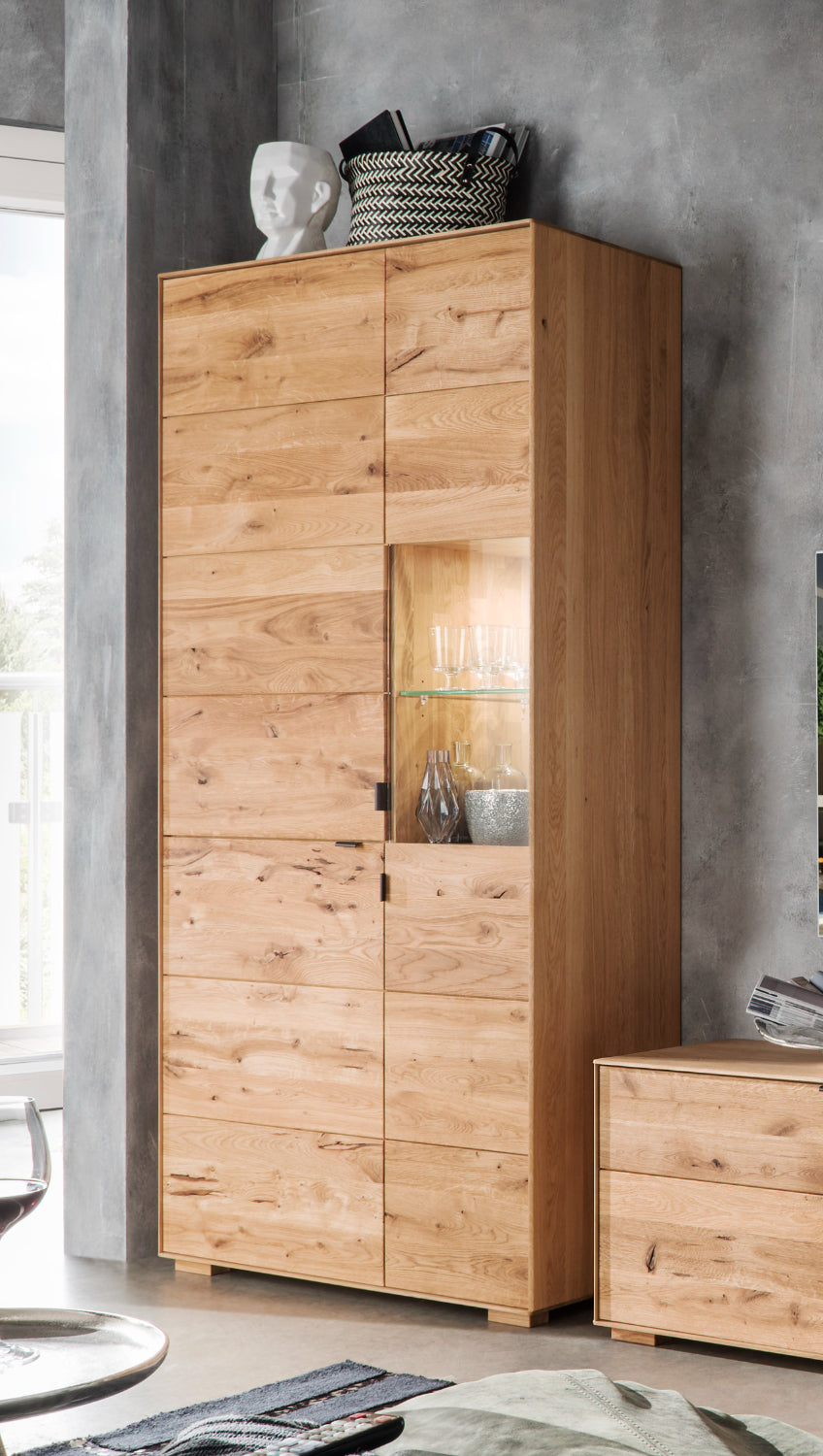 3-teilig, Korpus: Kernbuche, Front: Wildkernbuche, inkl. Beleuchtung. Besteht aus: Highboard (B/H/T ca. 96 x 195 x 42 cm), TV Lowboard (B/H/T ca. 200 x 50 x 42 cm), Hängevitrine (B/H/T ca. 61 x 110 x 42 cm). Lieferzeit ca. 5-8 Wochen.