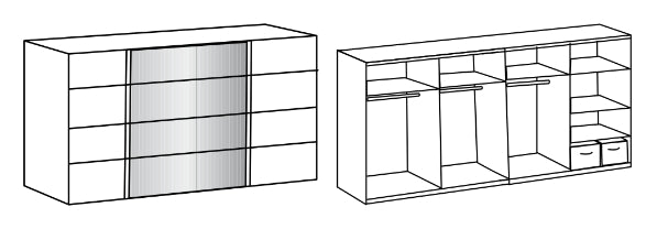 Für noch mehr Komfort können Sie Ihren Schrank mit folgendem Zubehör ergänzen: zusätzliche Einlegeböden, Wäscheeinteilung oder LED-Kleiderschrankbeleuchtung.