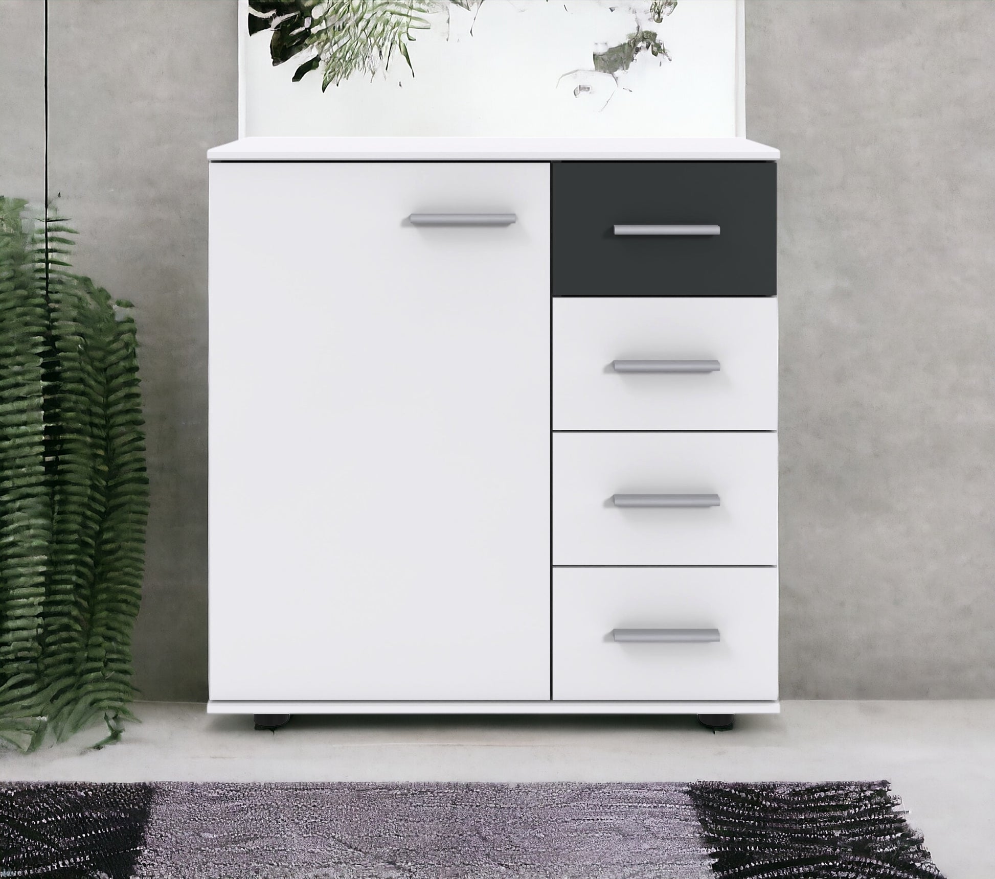 Entdecken Sie das moderne Design der Wimex Kombikommode Budapest! Mit einer Tür und vier Schubladen bietet sie nicht nur ausreichend Stauraum, sondern ist auch ein echter Blickfang. Mit den Maßen 81 x 83 x 41 cm passt sie perfekt in jedes moderne Zuhause. Überzeugen Sie sich von ihrer Funktionalität und Schönheit!