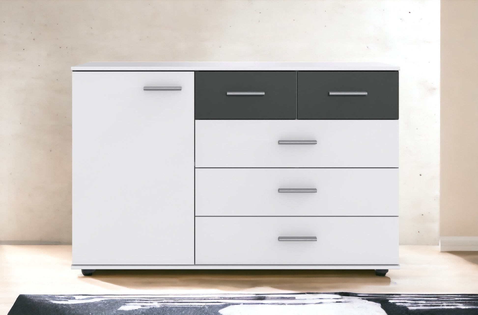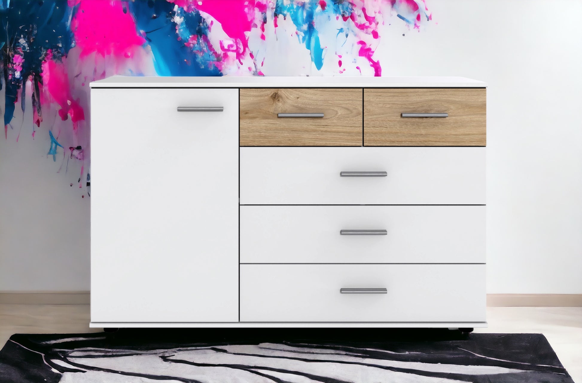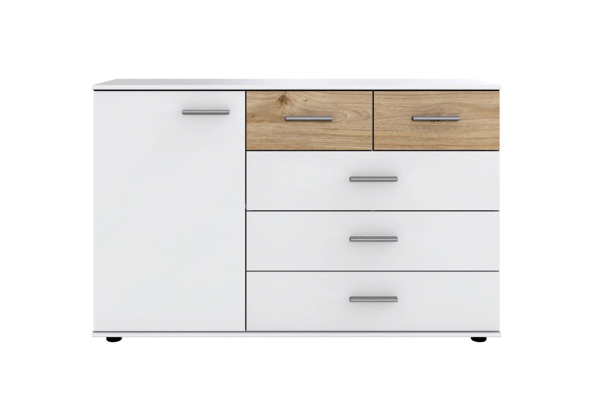 Mit der Wimex Kombikommode Budapest verleihen Sie Ihrem Raum einen modernen Touch. Sie bietet nicht nur viel Stauraum mit 5 Schubladen und einer Tür, sondern auch ein stilvolles Design. Die perfekte Lösung für ein aufgeräumtes Zuhause. Maße: B/H/T ca. 130 x 83 x 41 cm.